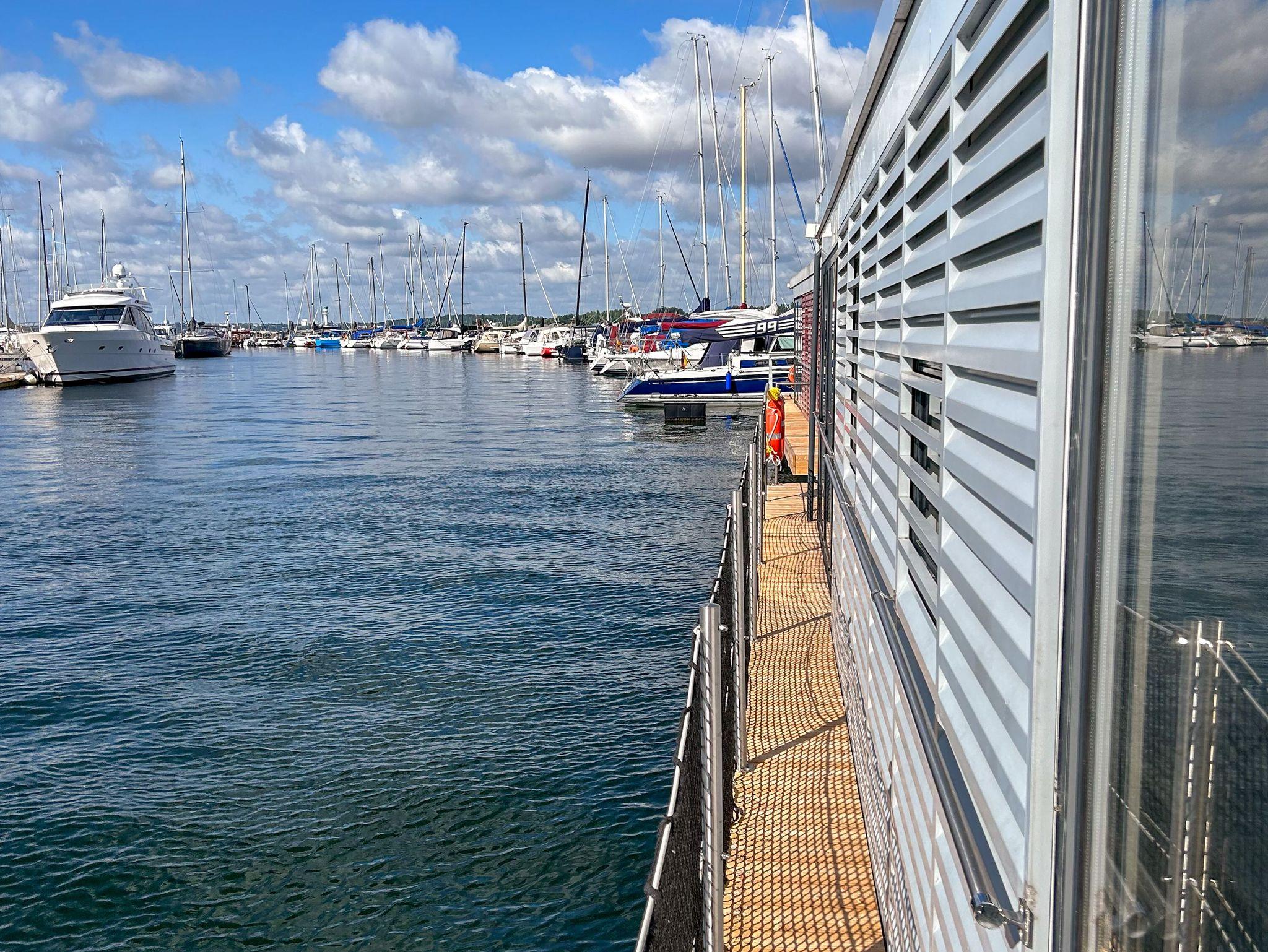 Die Floating Houses im Ostseebad Laboe erwarten dich in der stilvollen Baltic-Bay-Marina direkt an der Mündung der Kieler Förde zur Ostsee. Jedes der beiden hundefreien Hausboote bietet auf 44m² Platz für bis zu 4 Personen und verfügt über zwei separate Schlafzimmer ideal für Paare, kleine Familien oder Freunde, die gemeinsam maritimes Urlaubsfeeling erleben möchten. Die schwimmenden Ferienhäuser liegen ruhig am Steg und laden mit ihrer modernen, schiffigen Ausstattung zum Ankommen und Wohlfühlen ein. Vom Wohnbereich mit großer Fensterfront geht es direkt hinaus auf die Terrasse am Bug, die dir das Wasser sprichwörtlich zu Füßen legt. Und ein echtes Highlight wartet auf dem Dach: das Sonnendeck mit freiem Blick über die Förde, auf ein- und auslaufende Schiffe und das sanfte Leben im Hafen.
