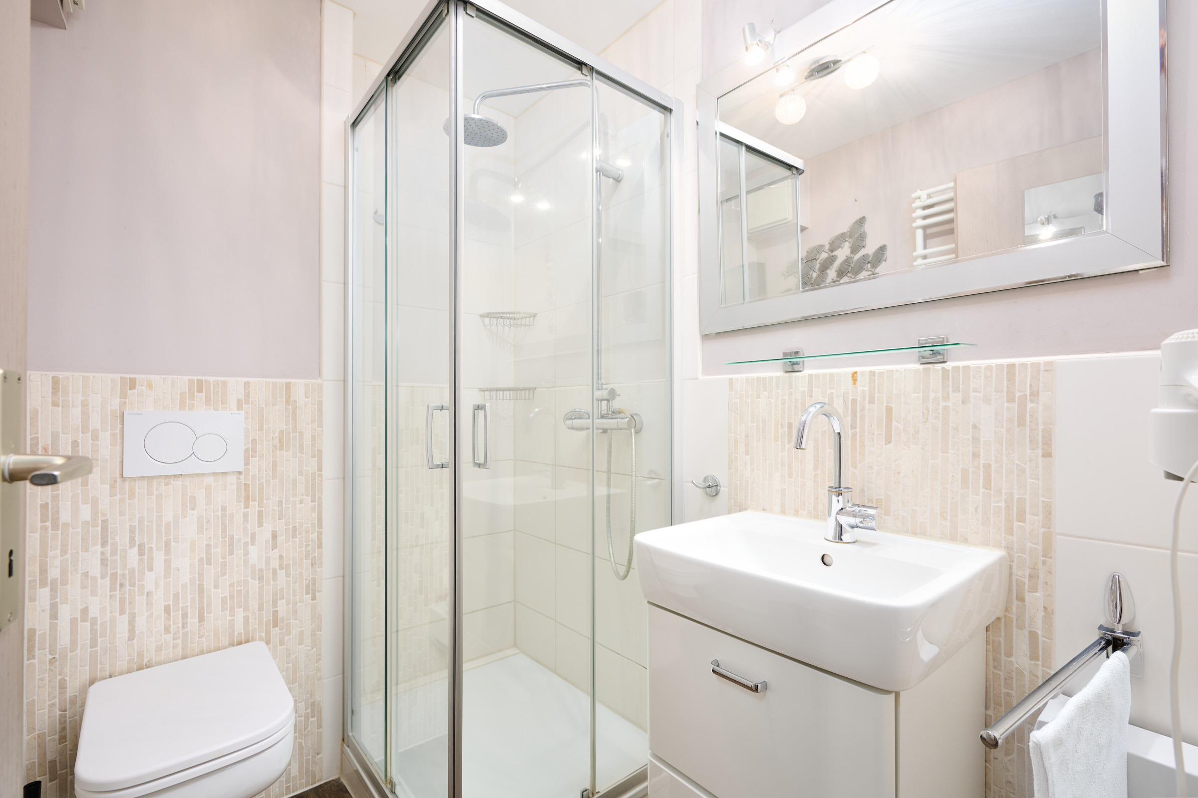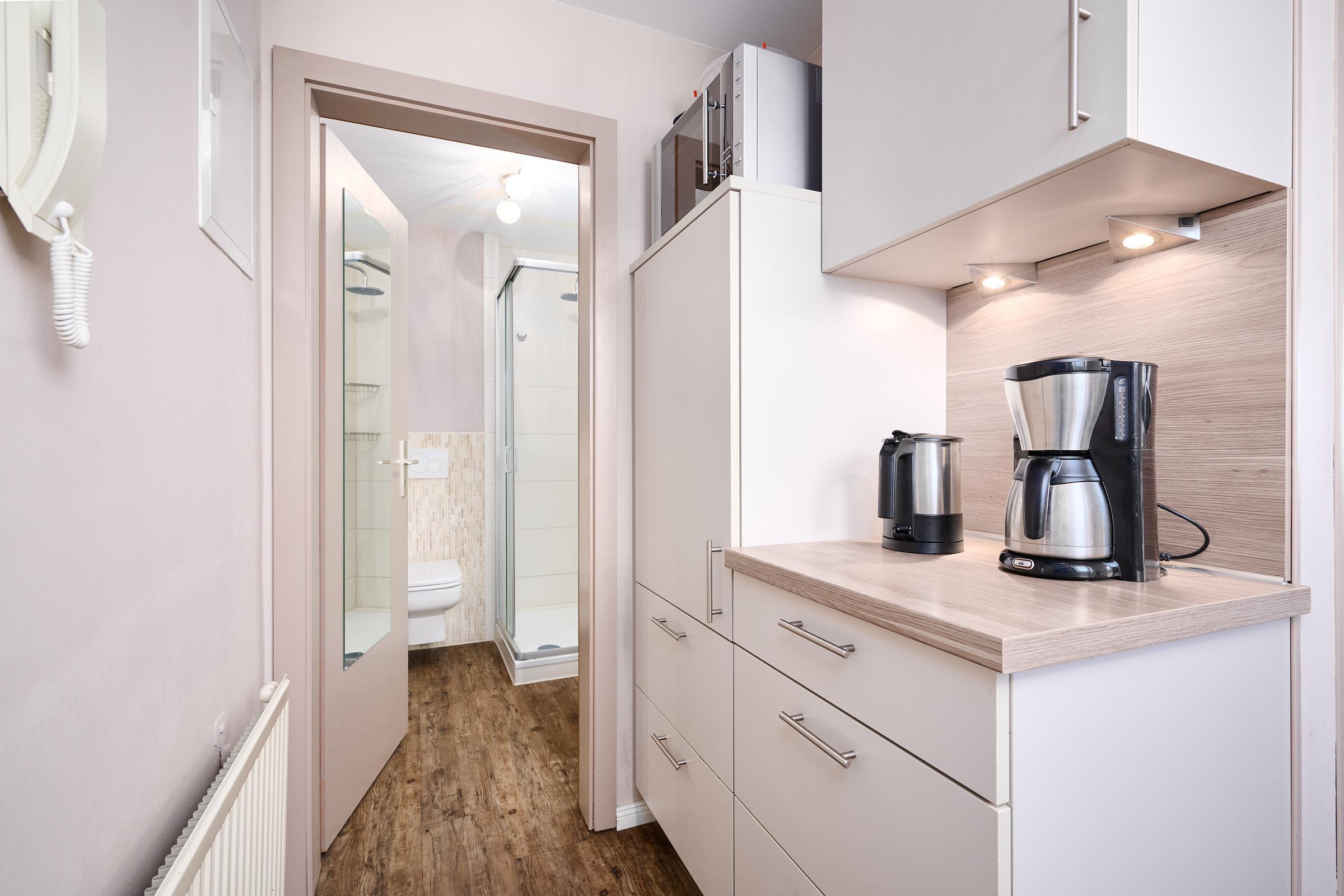 Der Ostseeblick ist kaum zu überbieten. Das Wohnzimmer und das Schlafzimmer sind zur Seeseite ausgerichtet. Der Wohnbereich ist mit einer modernen Schlafcouch ausgestattet. Mit nur einem Handgriff verwandeln Sie die Couch in ein bequemes Bett (170x200 cm). Die separate Küche bietet diverse Annehmlichkeiten, die das Urlauberherz beim Kochen begehrt. Zum Beispiel ein 4-Platten-Ceranfeld und eine moderne Mikrowelle mit Grill- und Backofenfunktion. Auf dieser Ebene der Wohnung befindet sich auch ein großzügiges Duschbad. Zur oberen Ebene der Wohnung führt eine relativ steile Treppe. Hier befindet sich ein Schlafzimmer mit einem modernen Doppelbett (2x 90x190 cm) und einem zweiten Flachbildfernseher. Ebenso ein zweites Duschbad. Auf beiden Ebenen gibt es jeweils einen Balkon, von denen Sie einen wunderschönen Blick auf die Kieler Förde genießen. Wer Wert auf gute Unterhaltung legt, darf sich über die moderne Multi-Media-Ausstattung mit 2 Flachbildschirmen mit Netflix-Zugang, Blu-Ray-DVD-Player und iPhone/iPad-Docking-Station sowie Alexa freuen. Ein kostenloser WLAN-Anschluss (17.000 Mbit/s) gehört ebenso dazu.