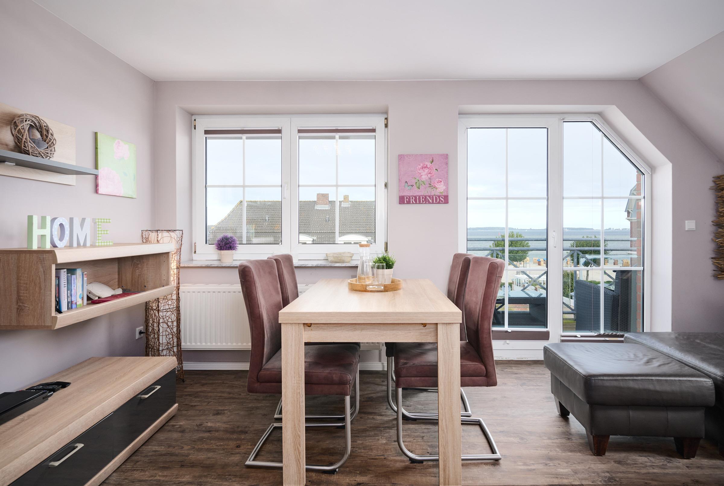 Im schönen Laboe: strandnahe 2-Zimmer-Ferienwohnung im 2. Stock mit 2 Balkonen und Meerblick bietet auf ca. 50 m² auf 2 Ebenen genug Platz für bis zu 4 Personen.