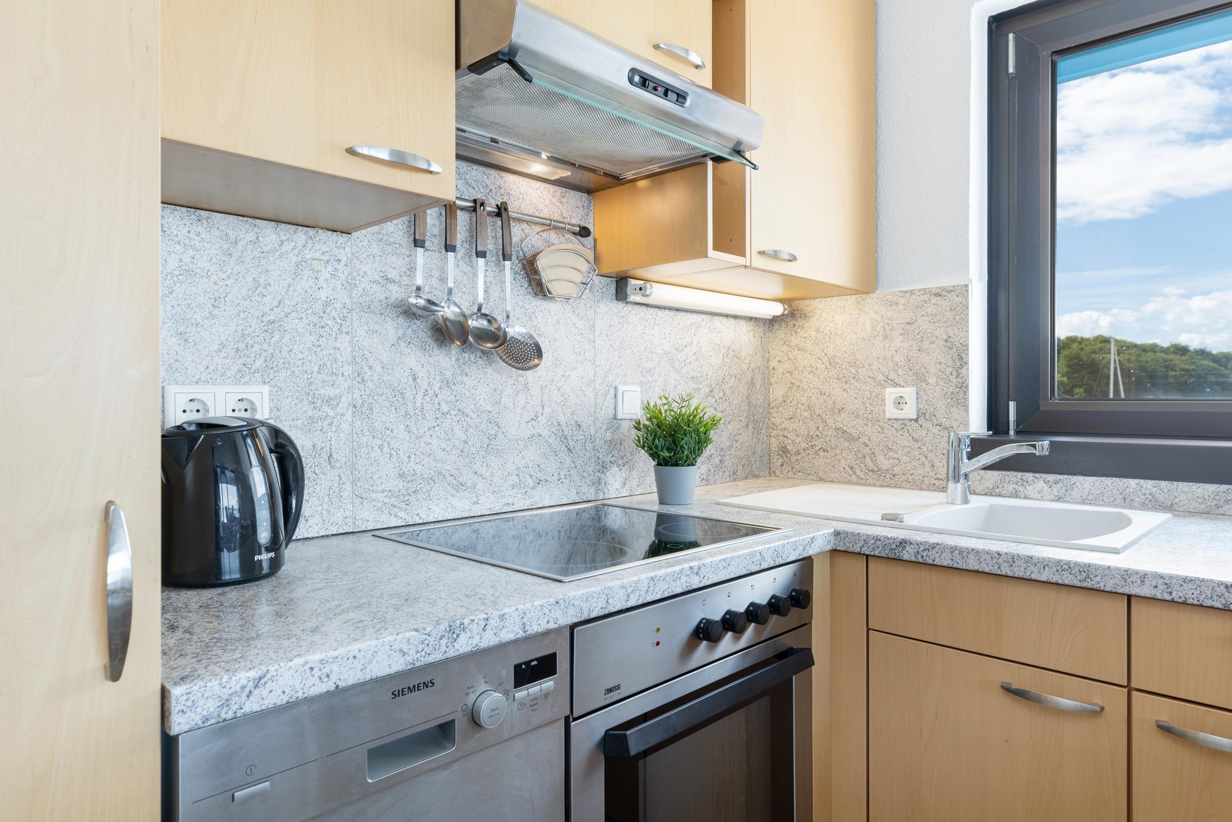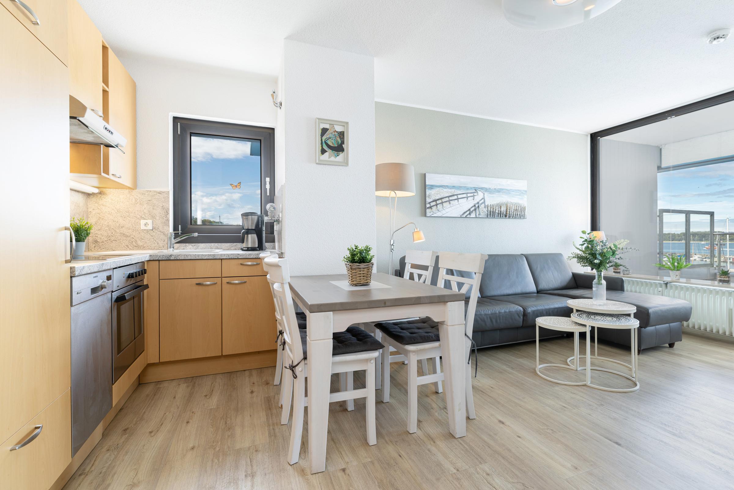 Dieses traumhafte Feriendomizil bietet Ostseeblick vom Feinsten! Zur Förde-Seite beeindruckt ein durchgehender Balkon vor dem Wohn- und Schlafzimmer. Der kombinierte Wohn-Schlafbereich verfügt über eine gut ausgestattete Küchenzeile, einen Essbereich und ein hochwertiges Schlafsofa. Das separate Schlafzimmer verfügt über ein Doppelbett (2x 90x200 cm) und einen Kleiderschrank mit ausreichend Stauraum. Ein innenliegendes, modernes Badezimmer rundet Ihren Aufenthalt ab. Der großzügige Balkon mit seinem wunderschönen Blick über die Ostsee und dem Hafen ist alleine das Ziel wert. Sicher Ihr neuer Lieblingsplatz, an dem Ihnen nie langweilig wird, wenn Sie die vorbeiziehenden Schiffe beobachten und die frische Luft genießen.
