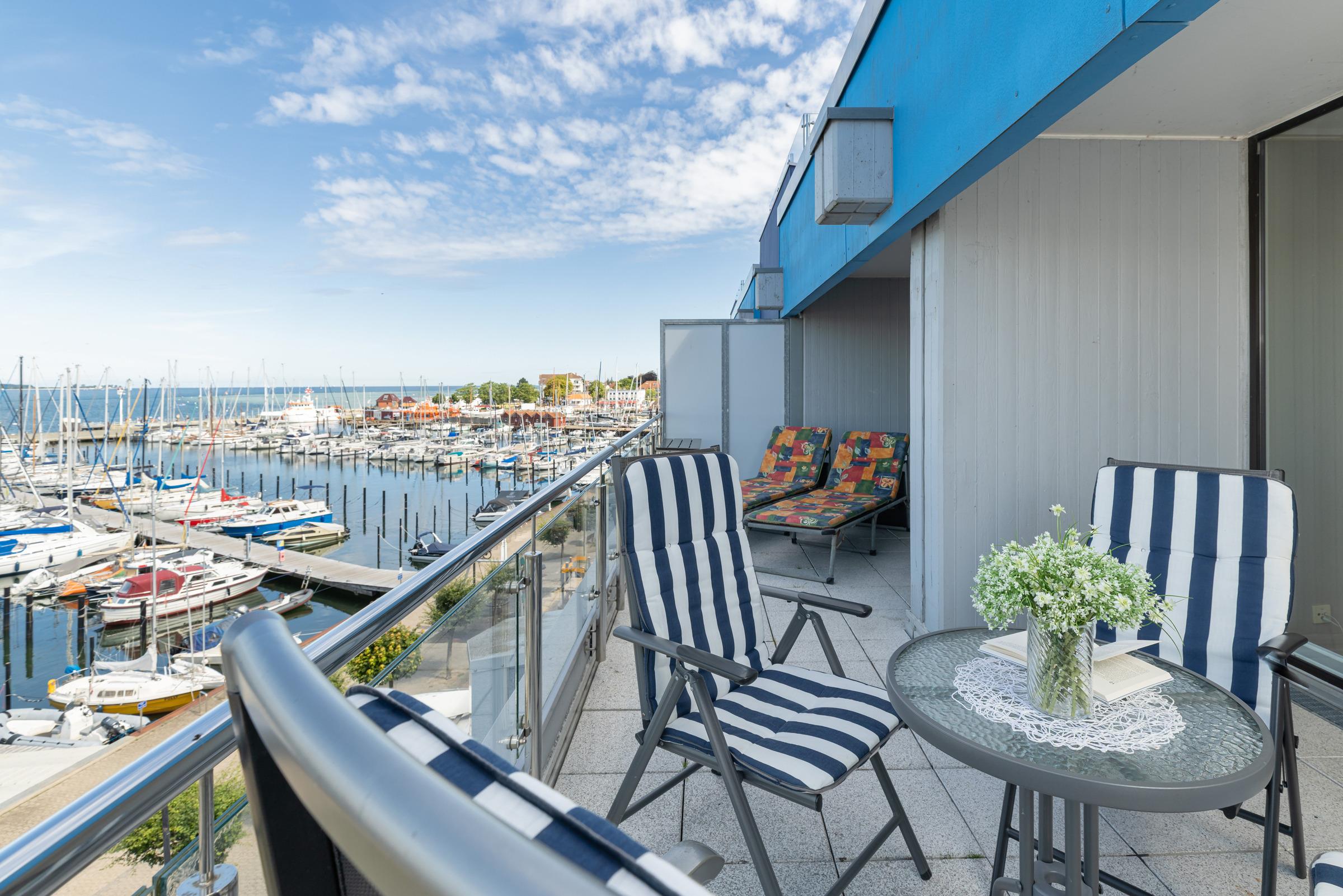 Moderne, ca. 60m² große 2-Zimmer-Ferienwohnung für bis zu 4 Personen direkt am Yachthafen von Laboe mit Balkon und herrlichem Blick auf die Kieler Förde. Die Wohnung erreichen Sie bequem mit dem Aufzug (100x100 cm).