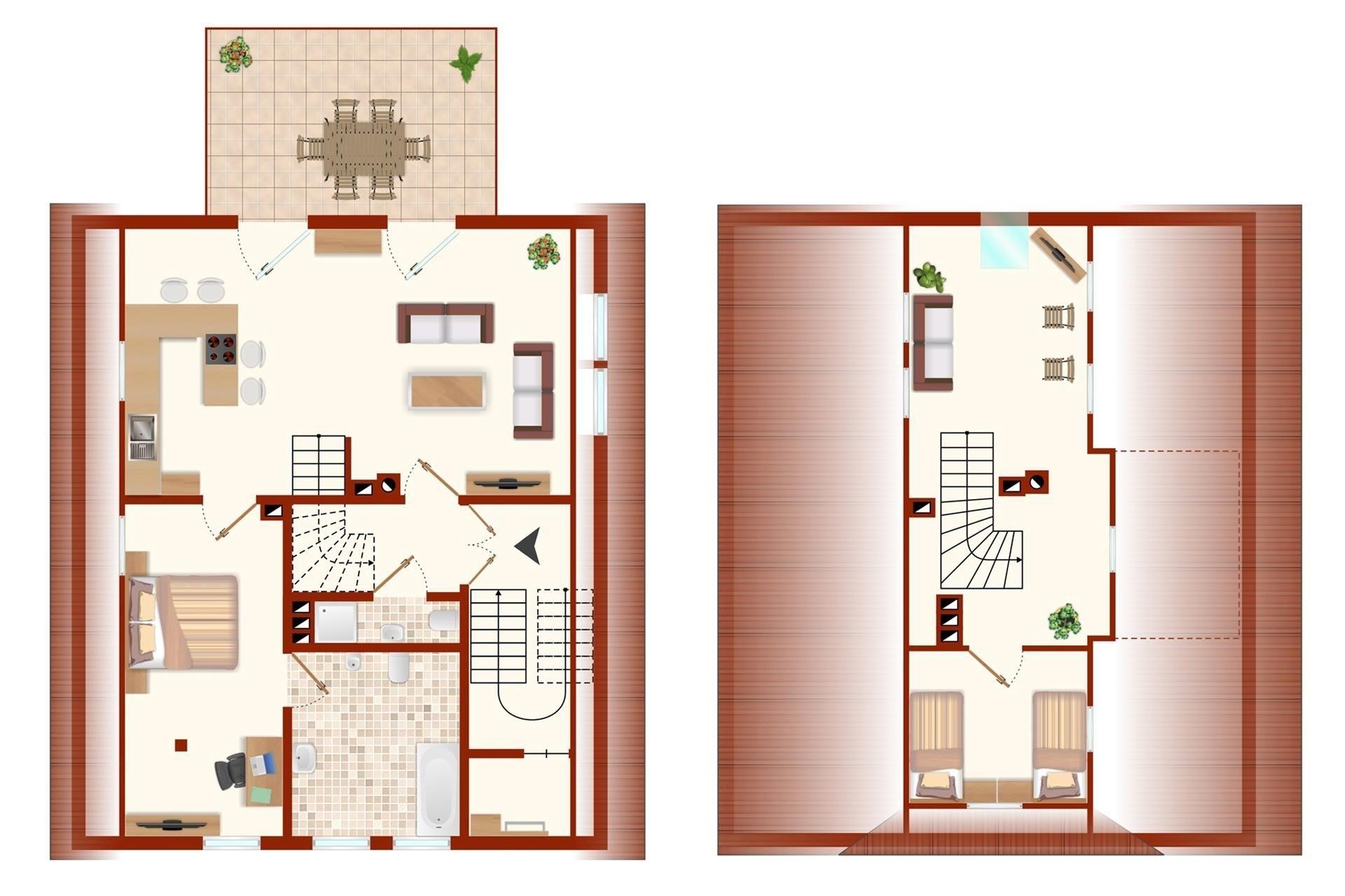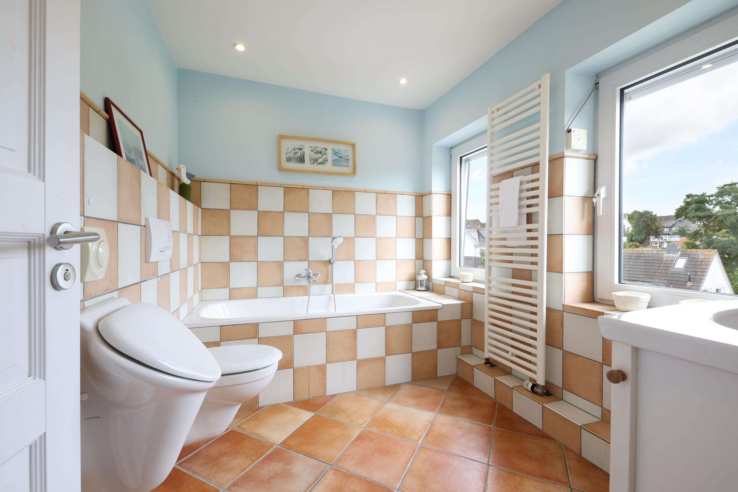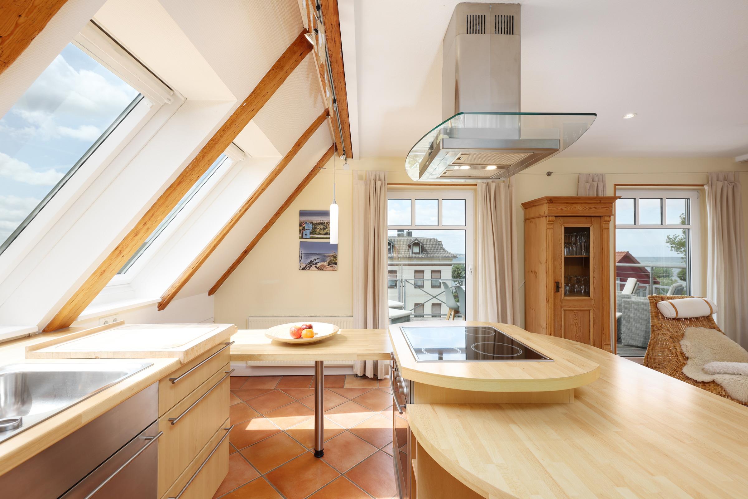 Erleben Sie einen entspannten Aufenthalt in zweiter Reihe im Herzen von Laboe. Nutzen Sie die kurzen Wege zum Strand und beobachten in luftiger Höhe von der Dachterrasse oder darüberliegend vom Cabriofenster aus vorbeiziehende, dicke Pötte, Segler & Kitesurfer - selbst das Ehrenmal von Laboe ist von hier aus gut sichtbar. Die untere Ebene verfügt über einen großzügigen kombinierten Wohn-Ess-Küchenbereich mit gemütlichen Holzbalken.. Entspannen Sie in der Sitzecke mit Smart-TV. oder kochen Sie gemeinsam in der hochwertigen Küchenzeile mit Kochinsel und Sitzplätzen. Ein Schlafzimmer mit Doppelbett (2x 90x200 cm) sowie einem Badezimmer en Suite, ein weiteres Duschbad sowie die möblierte Dachterrasse runden diese Etage ab. Über einen schmalen Treppenaufgang im Schiffsdesign erreichen Sie das Dachgeschoss in der 4. Etage. Das dortige Zweibettzimmer ist separiert vom weiteren Wohnbereich mit gemütlichen Sitzmöbeln, Flachbild-TV und vor allem dem beeindruckenden Ausblick aus dem Cabriofenster Richtung Kieler Förde.