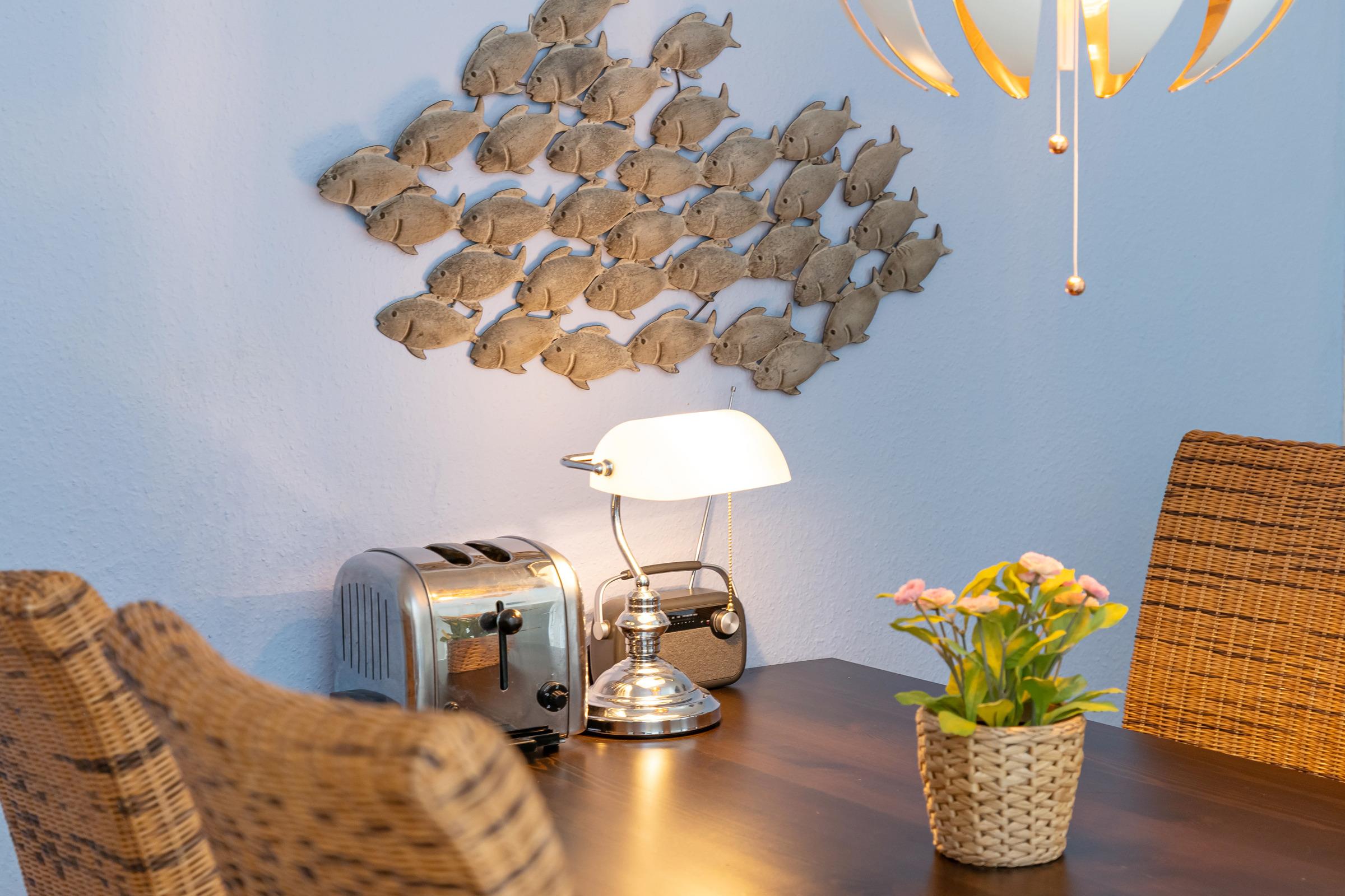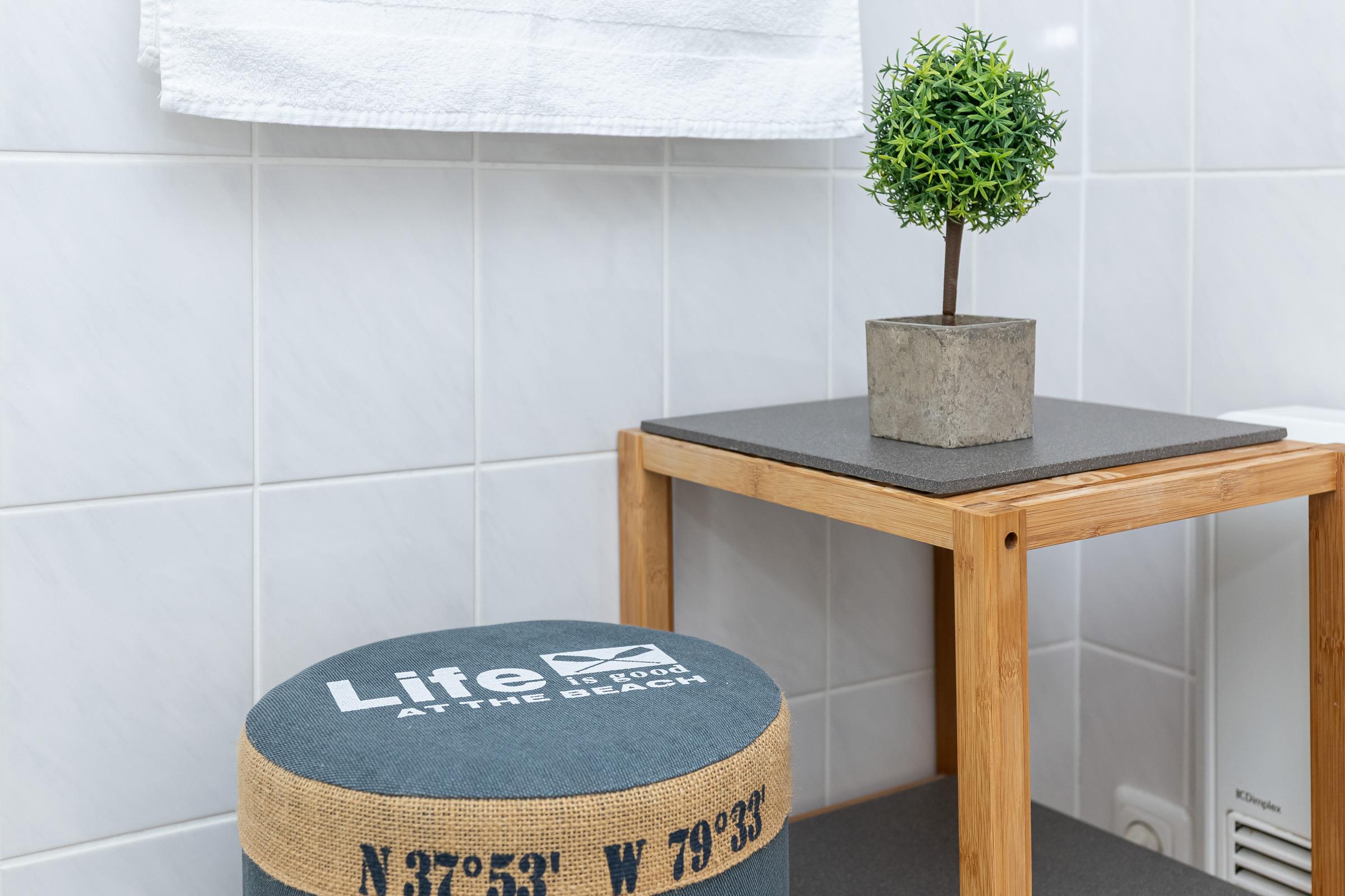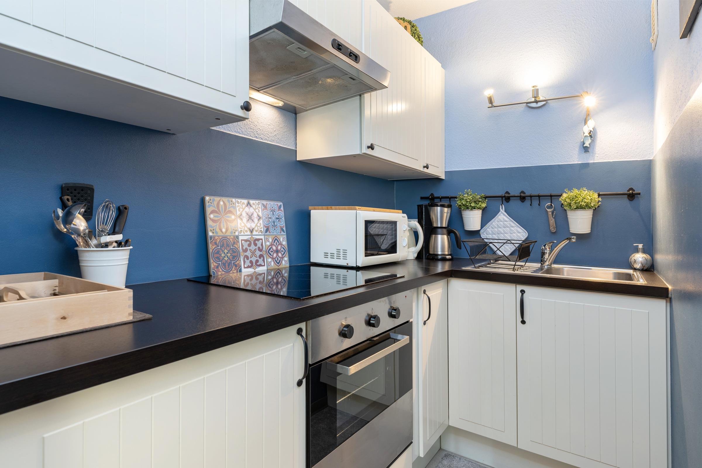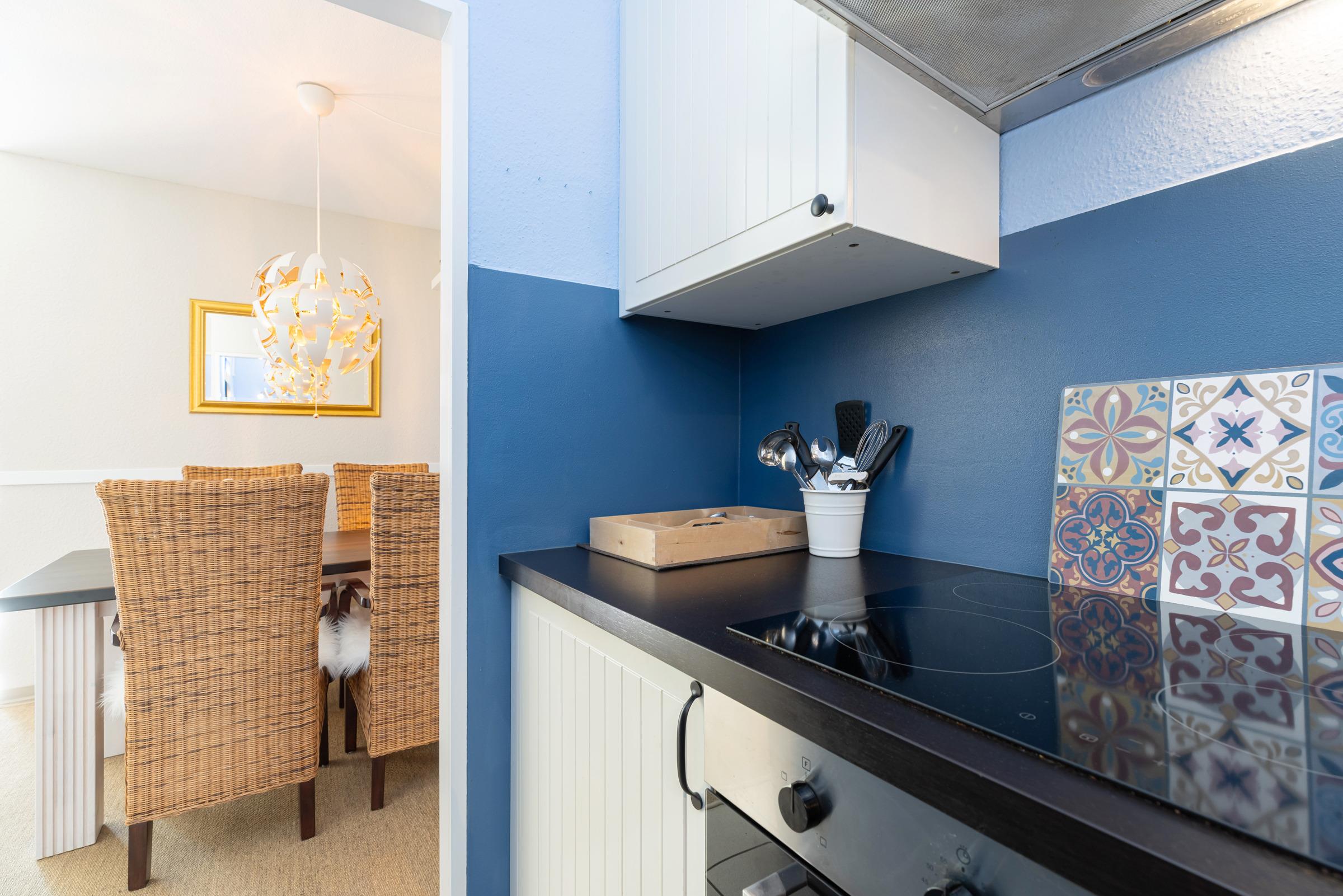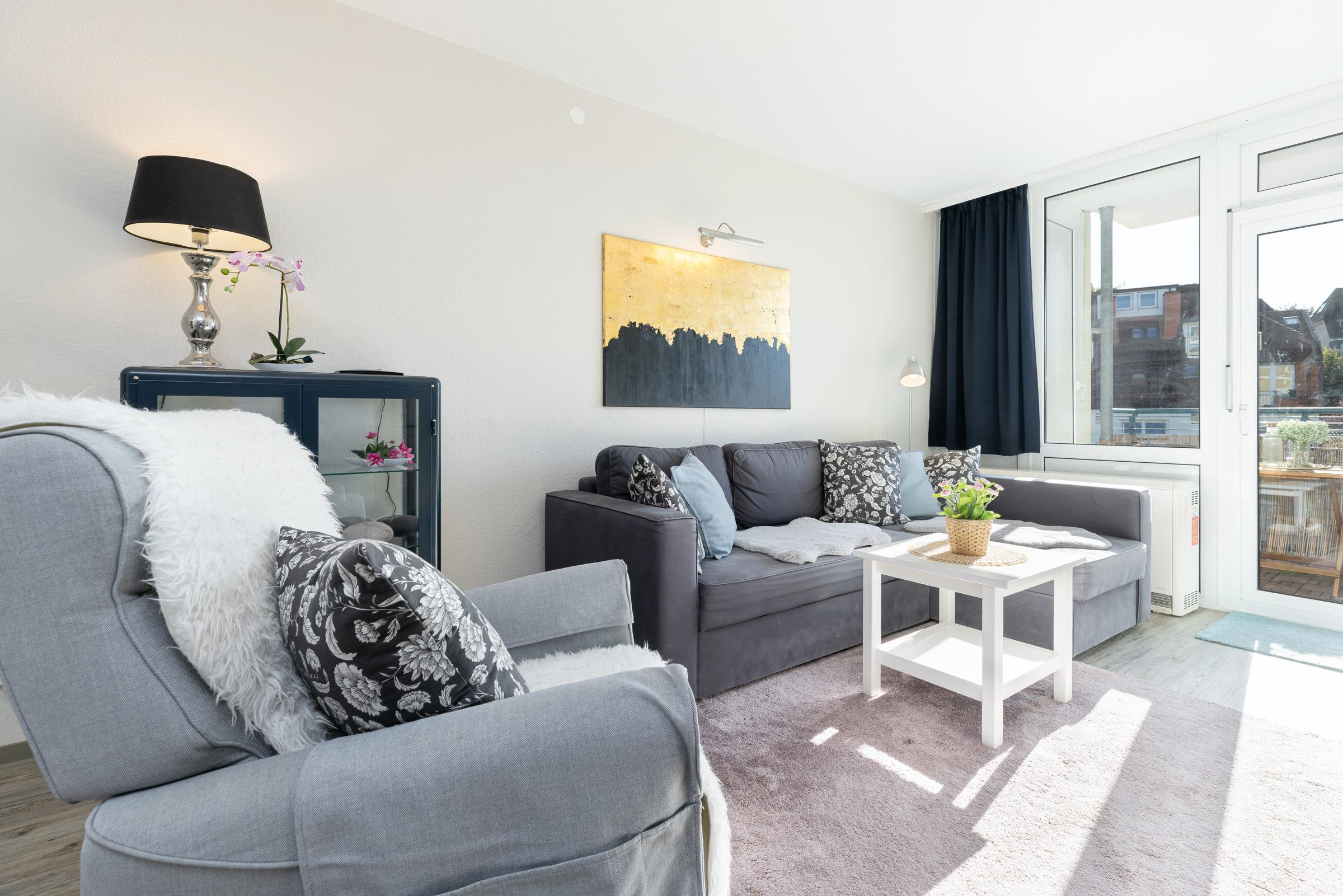 Das moderne 2-Zimmer-Appartement Strandperle für 2 Erwachsene und 2 Kinder befindet sich in der 2. Etage, nur wenige Minuten Fußweg vom Strand, vom Ortszentrum und vom Hafen entfernt.