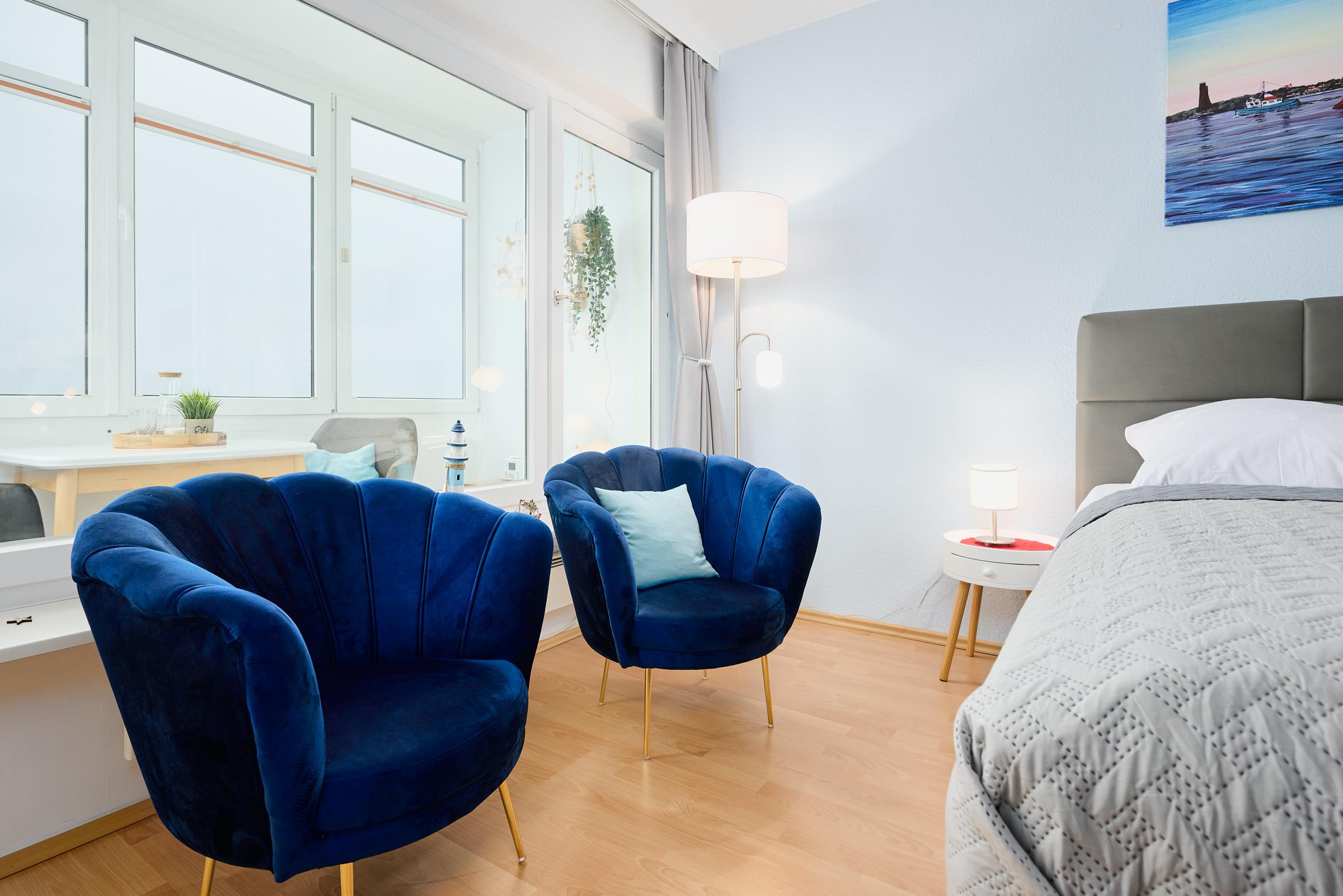 Die perfekte Lage ermöglicht es Ihnen, den Strand in nur wenigen Schritten zu erreichen und die frische Meeresluft zu genießen. Im gemütlichen Boxspring-Doppelbett (160x200 cm) kann man sich nach einem schönen Tag am Strand gut erholen und ruhigen Schlaf finden. Für Ihre Urlaubsgarderobe steht ein großer Kleiderschrank bereit. In der kleinen Küche finden Sie alles, um sich ein leckeres Essen zuzubereiten. Genießen Sie den schönen Sonnenuntergang von der Loggia aus. Auch bei schlechtem Wetter sitzen Sie hier in der ersten Reihe und können die vorbeifahrenden Schiffe betrachten.