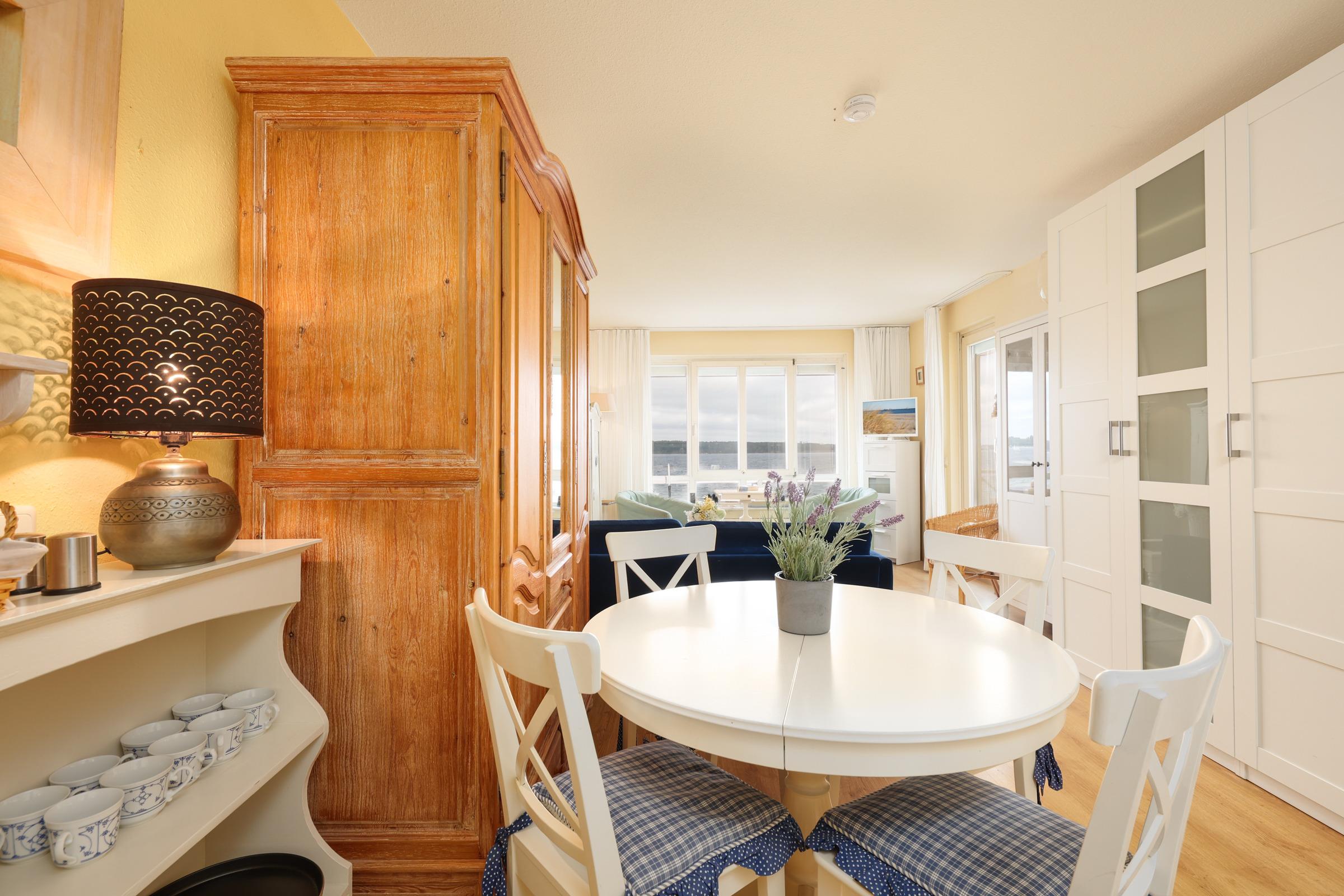 Vom Balkon haben Sie einen schönen Blick auf den Strand, die Kieler Außenförde und die vielen vorbeifahrenden Schiffe. Der perfekte Platz für den ersten Kaffee am Morgen und laue Abende mit einem Gläschen Wein. Für Ihre Urlaubswäsche stehen Ihnen gemeinschaftlich nutzbare Waschmaschinen und Trockner zur Verfügung (Münzgeräte).