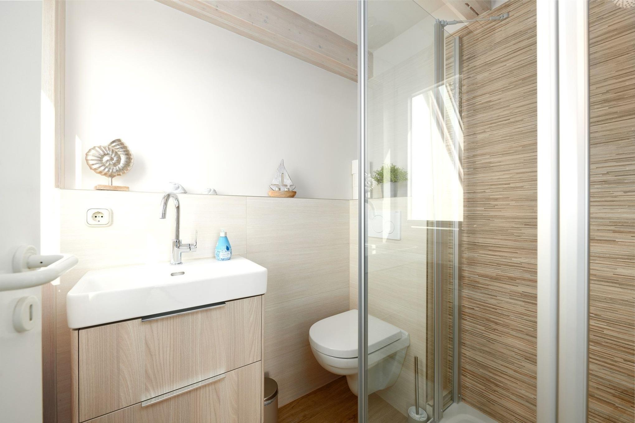 Auf der Galerie finden Sie erholsamen Schlaf in dem komfortablen Doppelbett, das zum Träumen einlädt. In den Einbauschränken ist viel Platz für Ihre Urlaubsgarderobe. Im unteren Bereich befindet sich der gemütliche Wohn-/ Essbereich mit dekorativem Kaminofen sowie die gut ausgestattete, kleine Küchenzeile. Vom Esstisch aus haben Sie ebenso wie auf dem Balkon einen schönen Blick auf die Ostsee. Auf dem Balkon befindet sich zur Abschattung eine Markise, die Sie an heißen Sommertagen nutzen können. Das Tageslichtbad mit Dusche ist hell und freundlich eingerichtet.