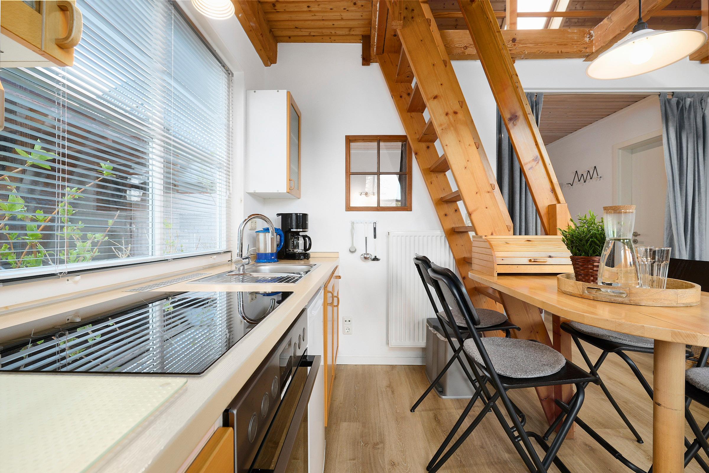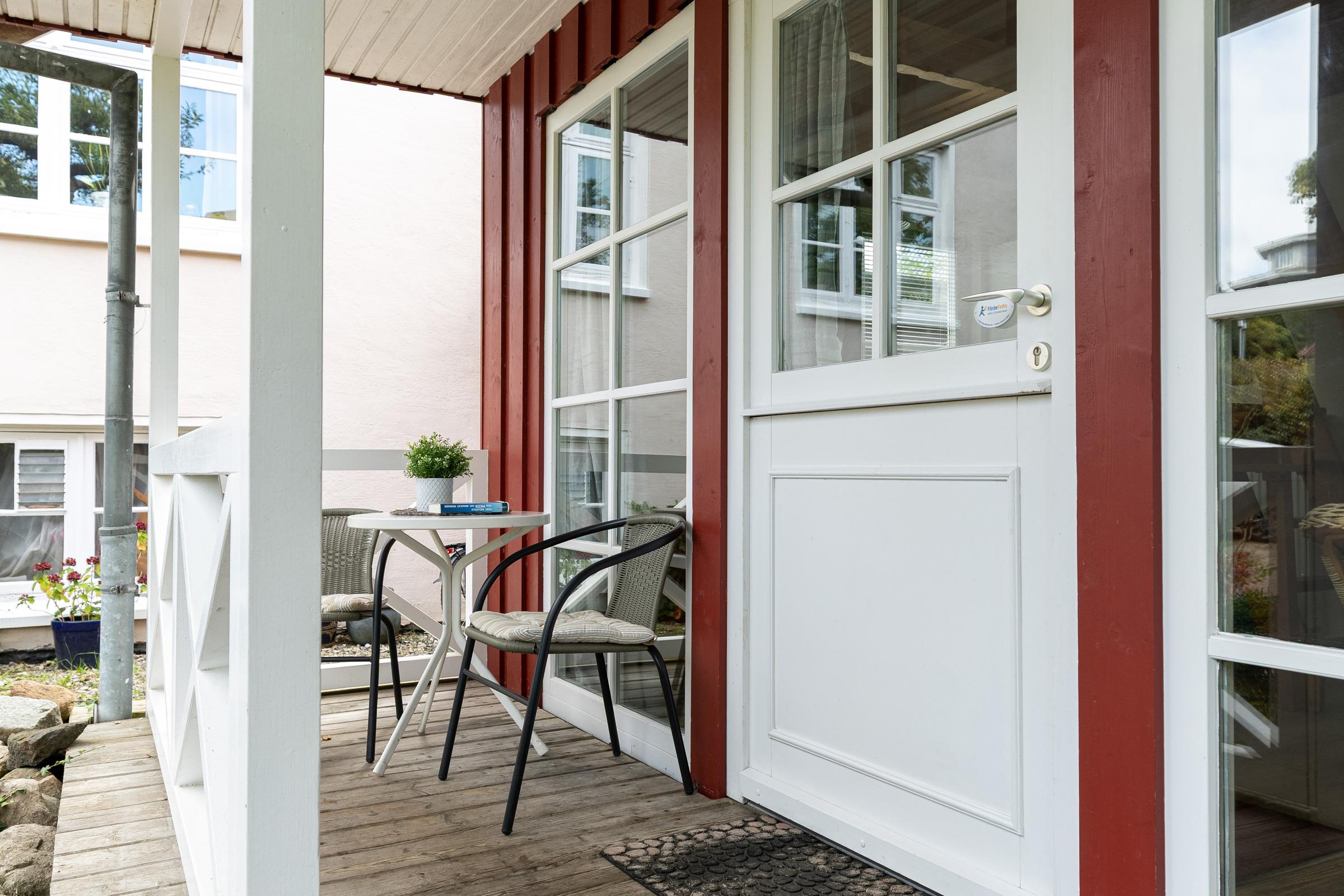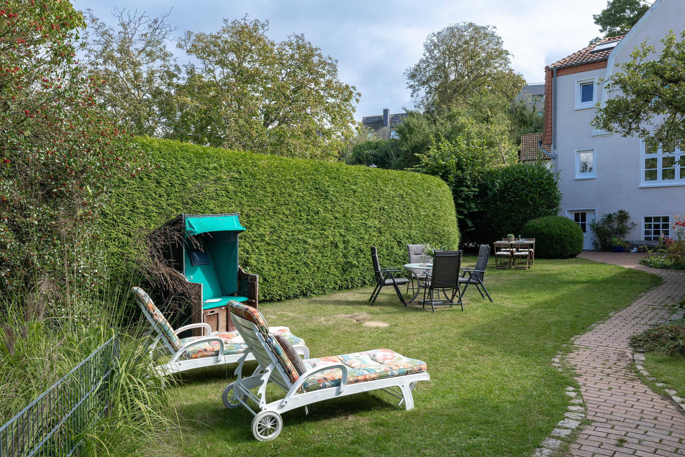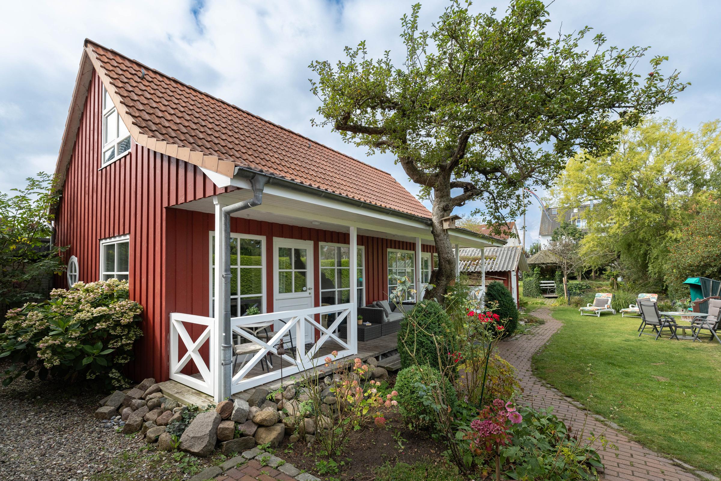 Die gesamte Einrichtung ist sehr gemütlich. Im Erdgeschoss befinden sich das Wohnzimmer mit einer integrierten Küchenzeile, das Duschbad und der sogenannte Alkoven (Bett) für 2 Personen (180x200 cm). Die vorgelagerte Terrasse mit Strandkorb steht Ihnen zur Eigennutzung zur Verfügung. Der wunderschöne Garten kann von allen Gästen gemeinschaftlich genutzt werden. Bitte beachten Sie, dass die Empore für Gäste nicht zur Verfügung steht.