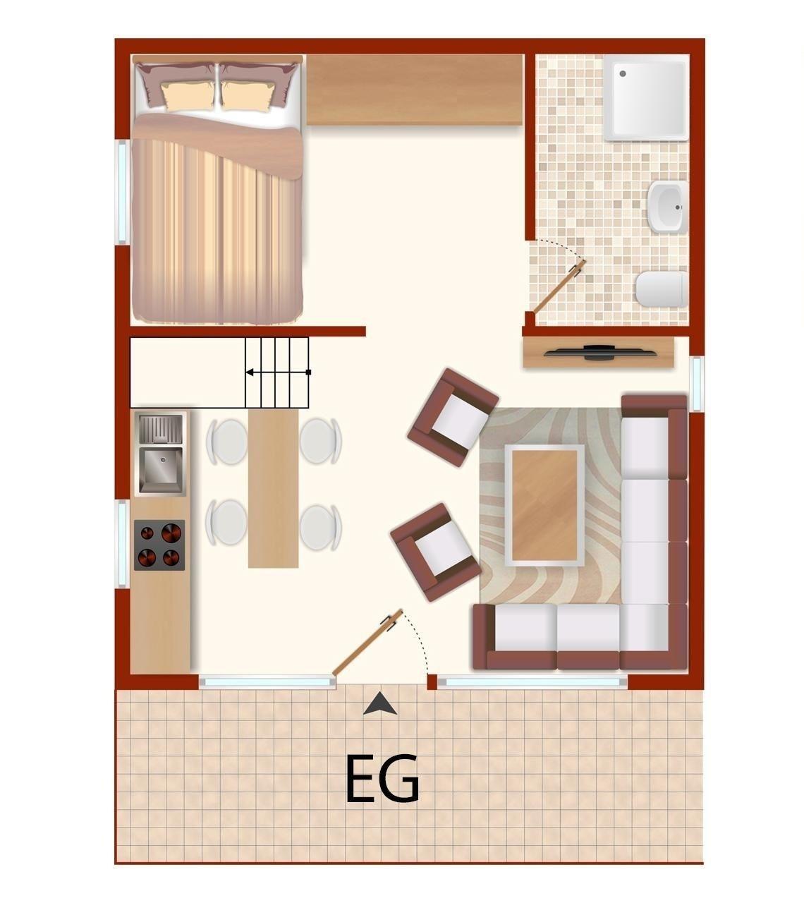 Das 1-Zimmer-Ferienhaus Lütt Drosselhörn 1 ist mit ca. 35 m² Wohnfläche für bis zu 2 Personen geeignet.