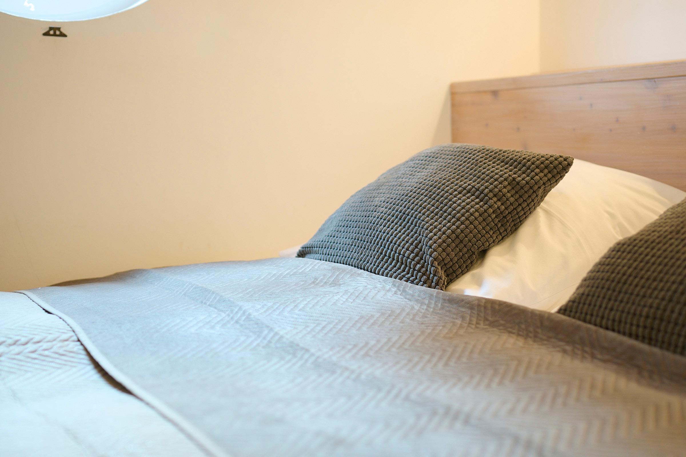 Wohnzimmer: Doppelbett (Alkoven, ca. 180x200 cm), Kleiderschrank, Verdunkelung (Vorhänge)