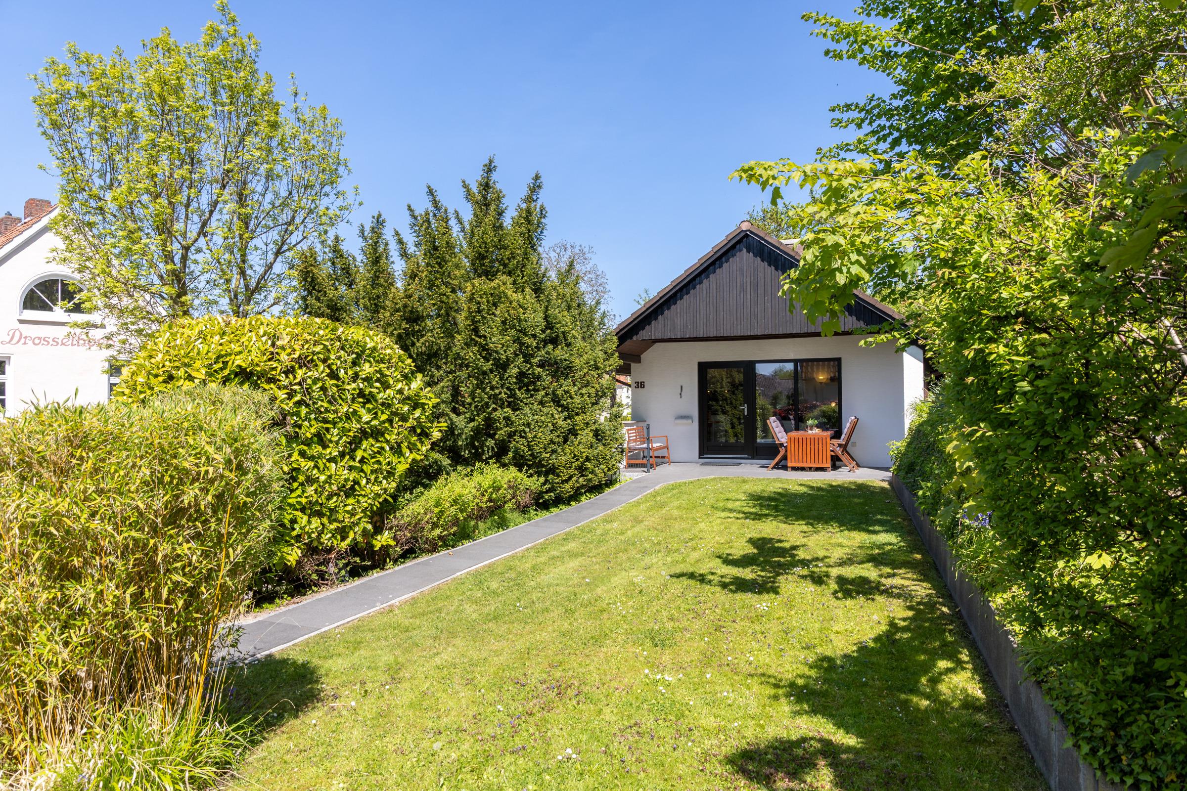 Die ca. 45 m² Wohnfläche bieten mit einem Schlafzimmer mit Doppelbett und einem weiteren Zimmer mit Etagenbett modernen Komfort. Der gemütliche Kaminofen lässt Sie an kühlen Tagen den Alltag vergessen. Der Smart-TV mit DVBT-2 HD (öffentlich-rechtliche + private Programme in HD), mit dem auch Online-Videotheken möglich sind, sorgt für Unterhaltung. Die Terrasse und der Garten sind nach Süden ausgerichtet. Der nur für Anlieger zugelassene Promenadenweg gehört zu den gefragtesten Lagen Laboes.
