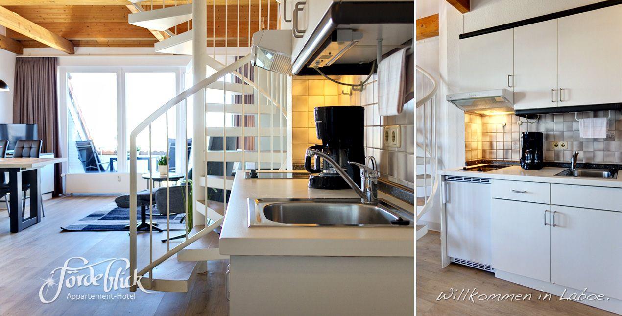 Dieser geräumige Appartement-Typ ist im Maisonette-Stil über zwei Etagen gehalten. Es ist sehr schön eingerichtet und verfügt über ein großzügiges Wohn-Esszimmer mit einer komfortablen Schlafcouch für zwei Personen, und ein separates Schlafzimmer mit Doppelbett. Mit der gut eingerichteten Küchenzeile mit Ceranfeld, Kühlschrank und Mikrowelle lassen sich leckere Speisen zubereiten. Die raumhohe Fensterfront lässt das Appartement hell und freundlich erscheinen. Schon vom gemütlichen Wohn- Essraum aus haben Sie einen guten Blick auf die Ostsee. Über eine Wendeltreppe erreichen Sie die Galerie Dort befindet sich ein bequemes Doppelbett. Auf dem gemütlichen Dachbalkon werden Sie sich wohlfühlen. Von dort aus haben Sie einen wunderschönen Blick auf die Ostsee mit den vorbeiziehenden Schiffen. Genießen Sie von dort zum Tagesausklang den Sonnenuntergang. Sie werden begeistert sein. Zur weiteren Ausstattung gehört: Kabel-TV, Radio und kostenfreies WLAN mit einfachen Zugang (nur ein Klick)