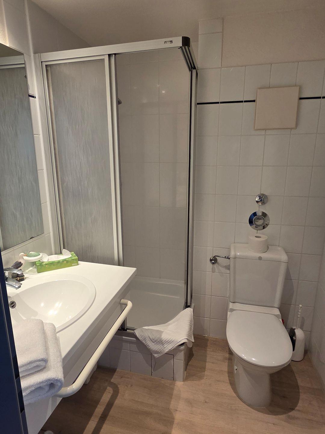 Diese Ferienwohnung hat ein Wohn-Esszimmer mit Schlafcouch für zwei Personen und ein getrenntes Schlafzimmer. Zur Wohnung gehören eine komplett eingerichtete Kitchenette und ein kleines Bad mit Dusche und WC sowie ein geräumiger Flur. Außen, eine großzügige Loggia mit Balkonmöbel. Weitere Ausstattungsmerkmale sind: Mikrowelle, Kabel-TV, Radio. und kostenfreies WLAN.