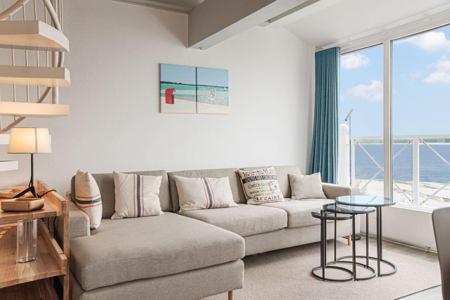 Das Appartement 26 liegt in 1. Reihe direkt an der Strandpromenade Laboe mit Panorama Blick auf die Kieler Förde, den Hafen, den Strand und die Ostsee.