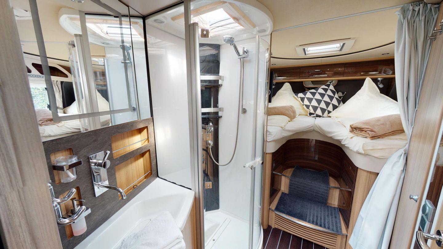 ist ebenfalls vorhanden. Die Waschausstattung beinhaltet eine Dusche, Toilette,