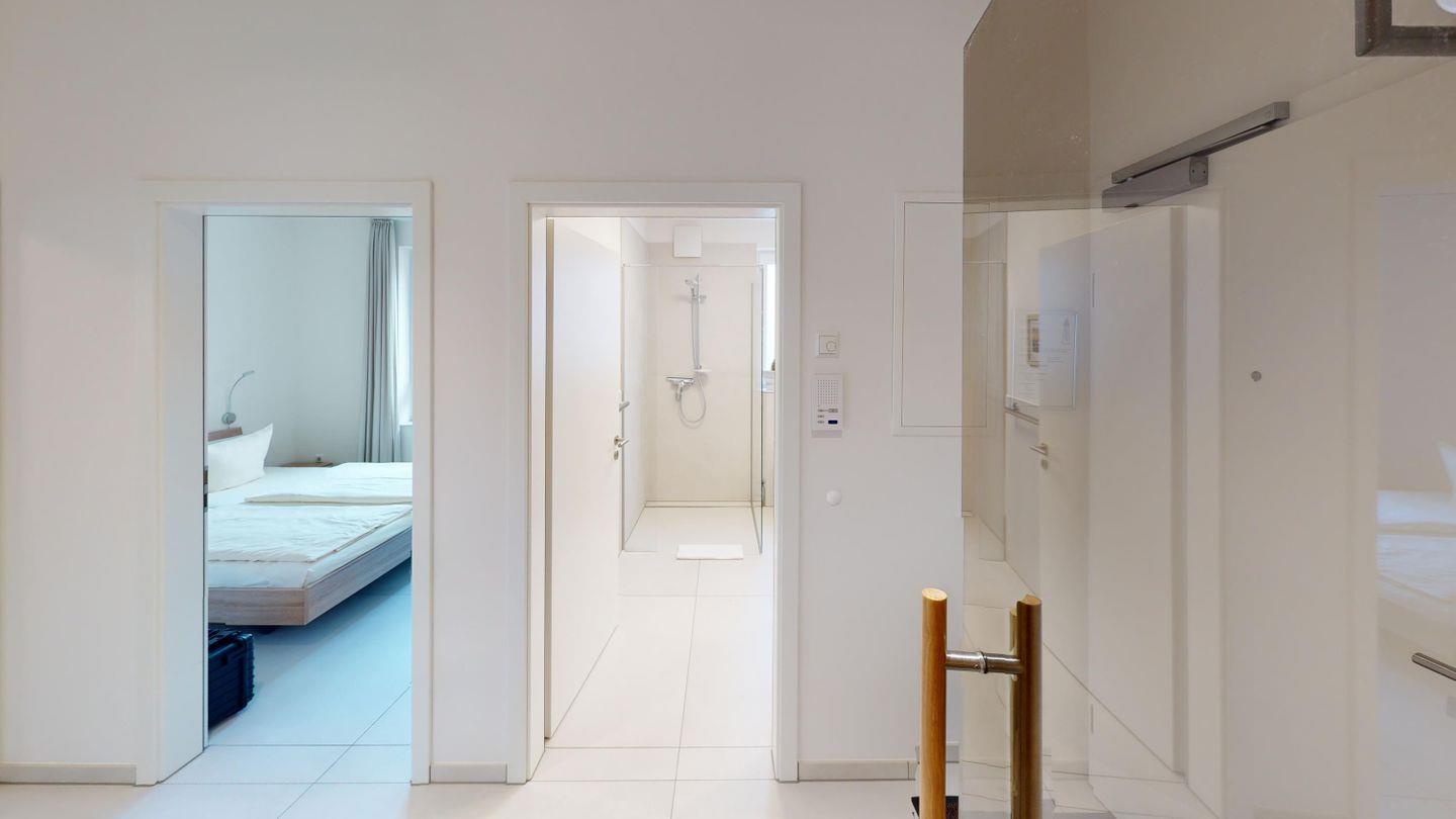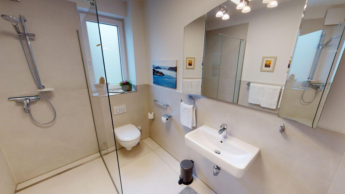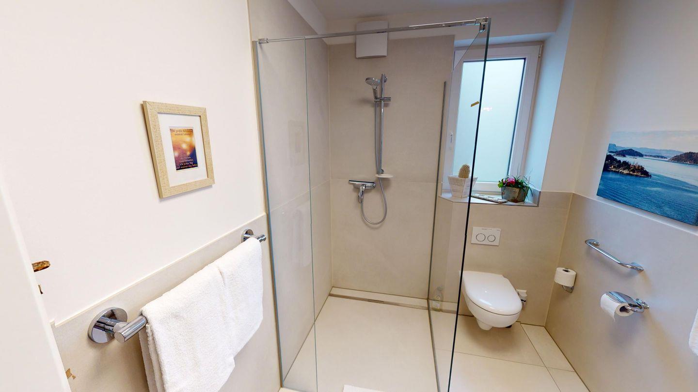 Die Wohnung liegt im Erdgeschoss und bietet auf etwa 55 m² Platz für zwei Personen – ideal für Paare oder Alleinreisende, die Komfort, Entspannung und eine unschlagbare Lage suchen. Der ebenerdige Zugang sowie die barrierearme Dusche ohne Einstieg im Badezimmer machen die Wohnung auch für Gäste mit eingeschränkter Mobilität besonders attraktiv.
