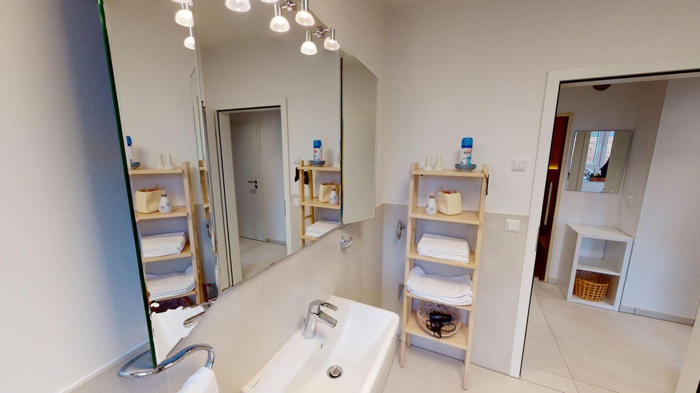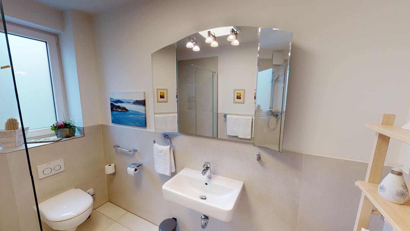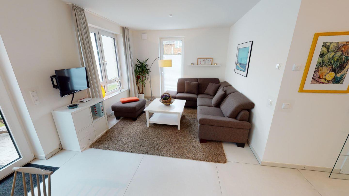 Die Wohnung liegt im Erdgeschoss und bietet auf etwa 55 m² Platz für zwei Personen – ideal für Paare oder Alleinreisende, die Komfort, Entspannung und eine unschlagbare Lage suchen. Der ebenerdige Zugang sowie die barrierearme Dusche ohne Einstieg im Badezimmer machen die Wohnung auch für Gäste mit eingeschränkter Mobilität besonders attraktiv.