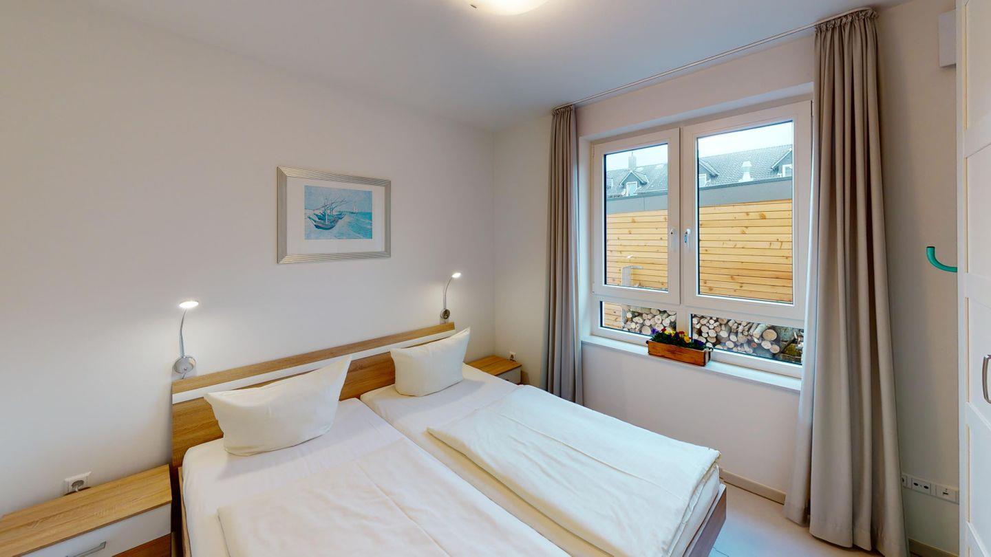 Das Schlafzimmer verfügt über ein komfortables Doppelbett – hell, ruhig und geschmackvoll eingerichtet für erholsame Nächte.