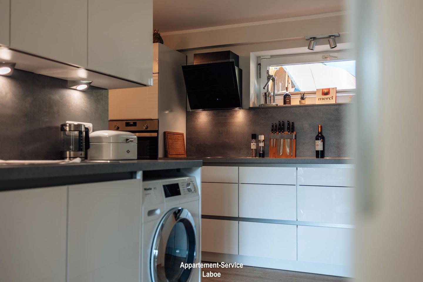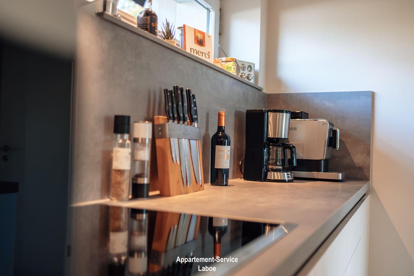 Die geschlossene Küche ist voll ausgestattet und überzeugt durch moderne Geräte: Induktionsherd, Backofen, Spülmaschine, Mikrowelle, Kühlschrank mit Gefrierfach, Kaffeemaschine und Wasserkocher. Alles, was du brauchst, um dich selbst zu verwöhnen.