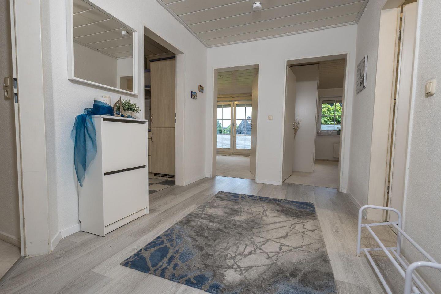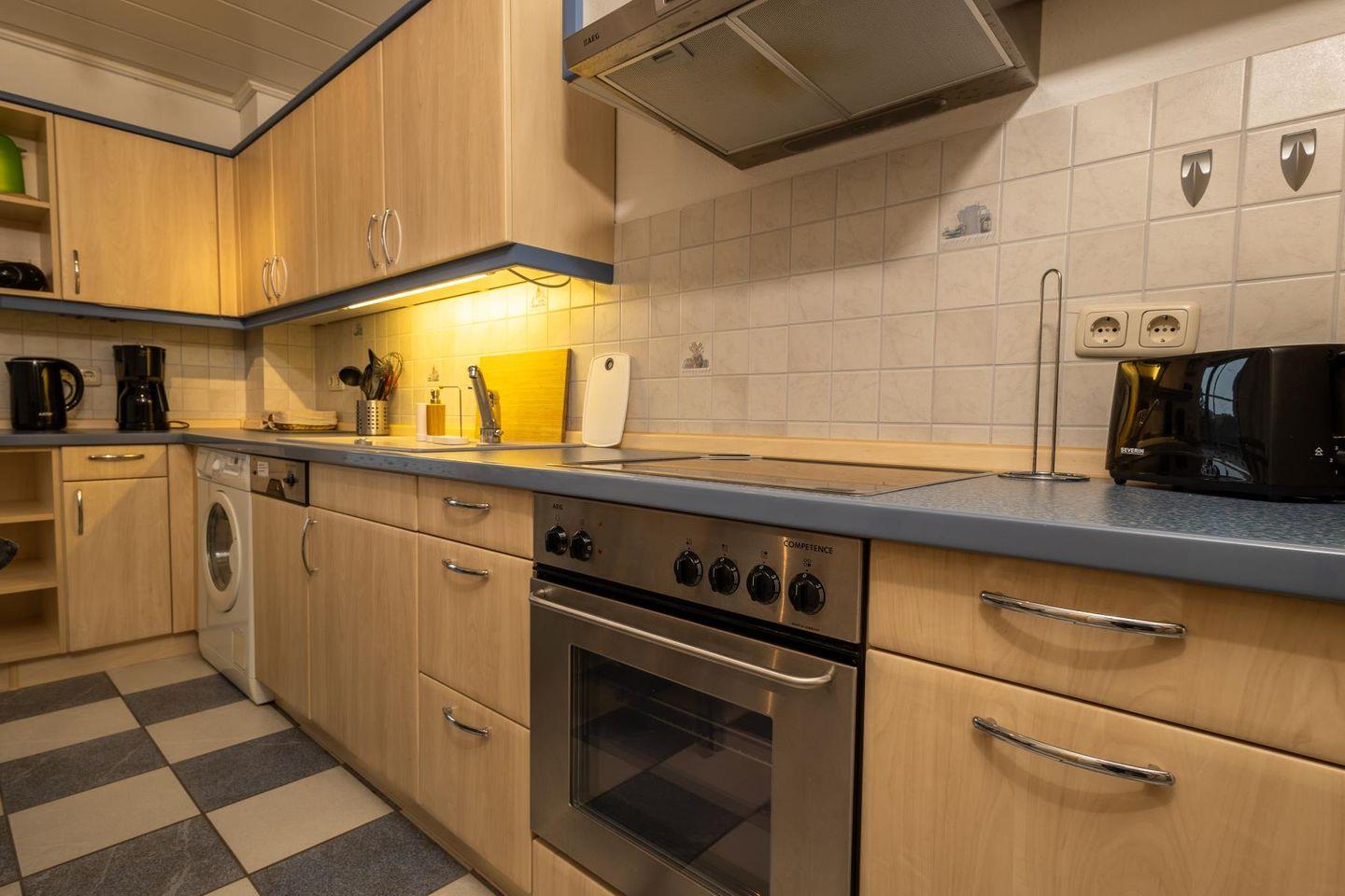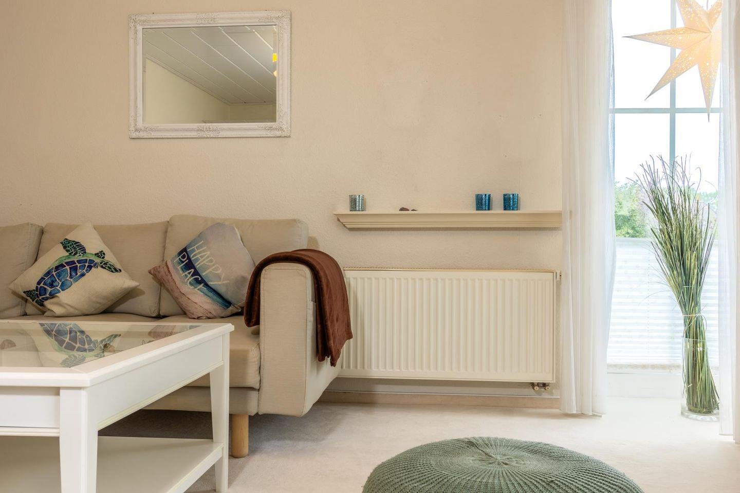 Die Wohnung empfängt dich mit einem hellen Wohnzimmer, in dem eine große Sofaecke zum Ausruhen einlädt – ob mit einem guten Buch, einem Film oder einfach bei einem ruhigen Moment mit Blick nach draußen. Die separate Küche ist voll ausgestattet, damit du dich ganz einfach selbst versorgen kannst: Cerankochfeld, Backofen, Kühlschrank, Spülmaschine, Mikrowelle, Kaffeemaschine und alles, was sonst noch dazugehört. Am Esstisch ist Platz für ausgedehnte Mahlzeiten oder ein schnelles Frühstück, bevor es raus ans Wasser geht.