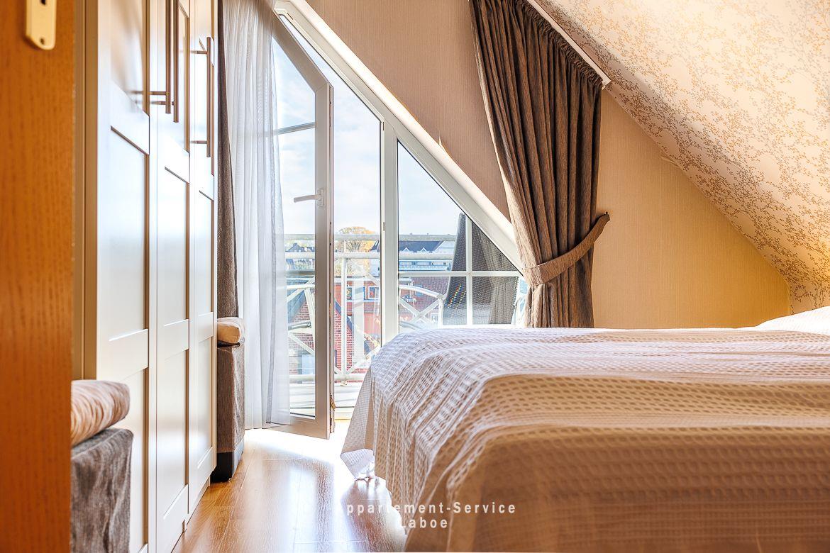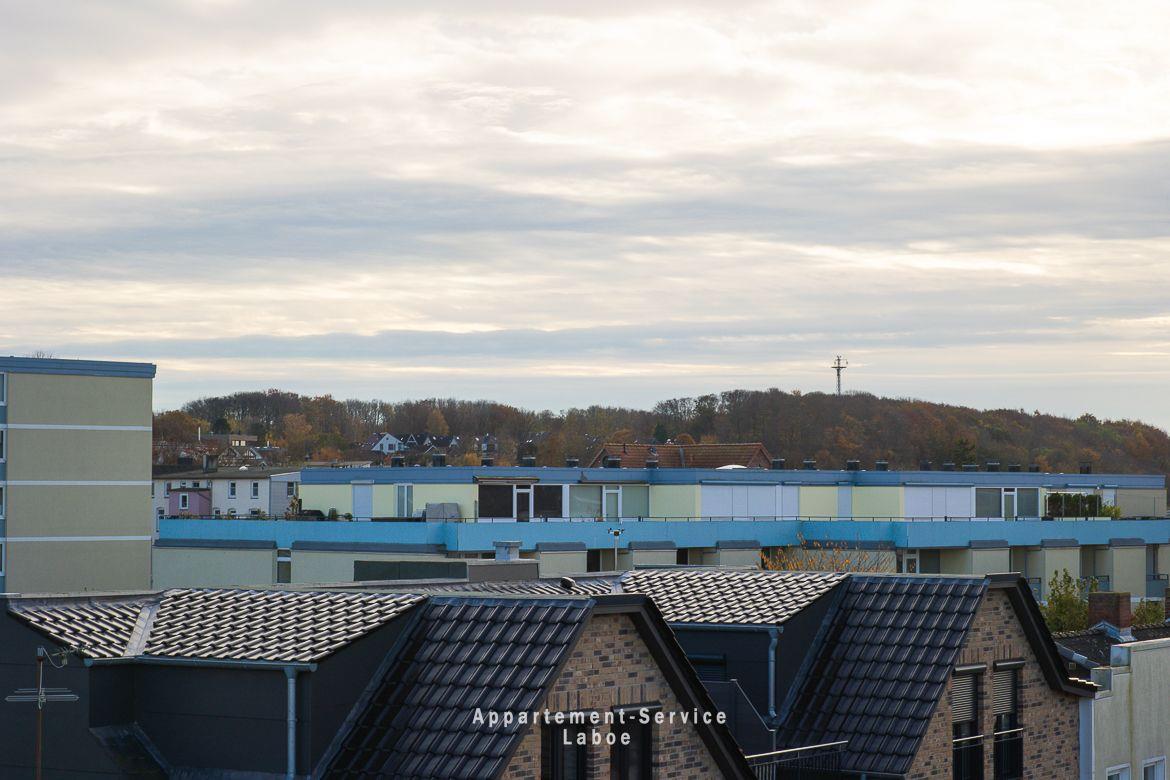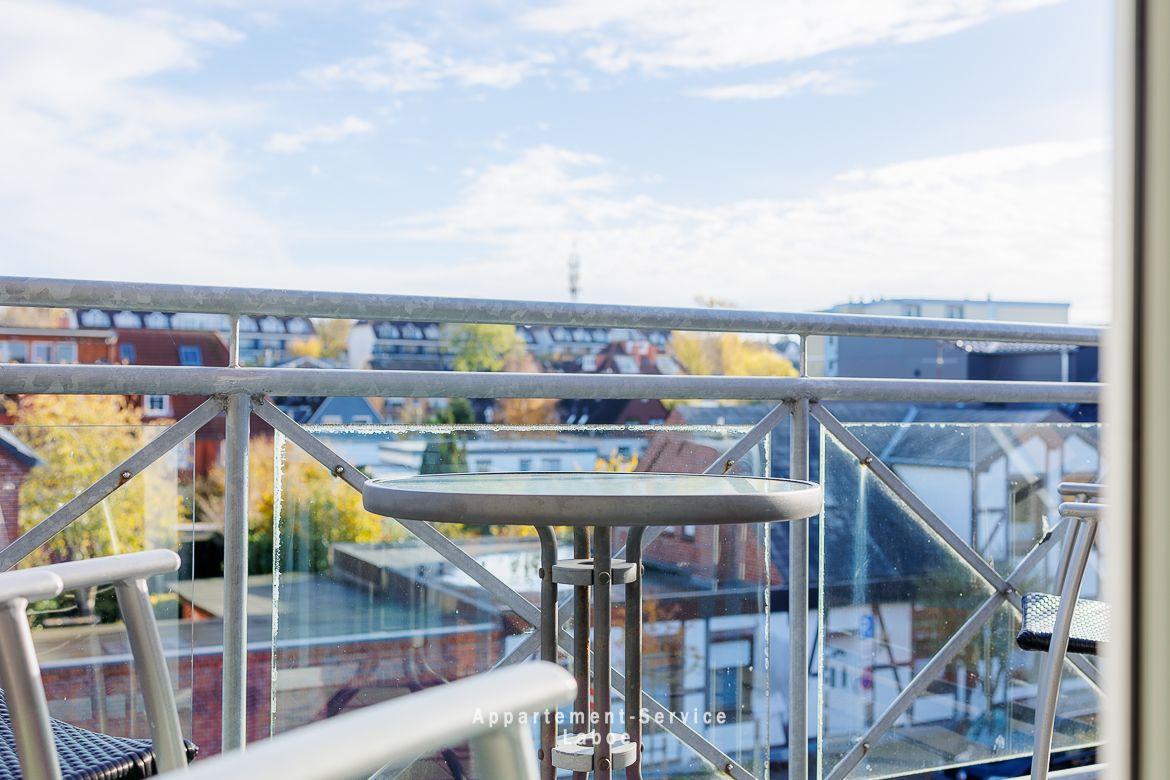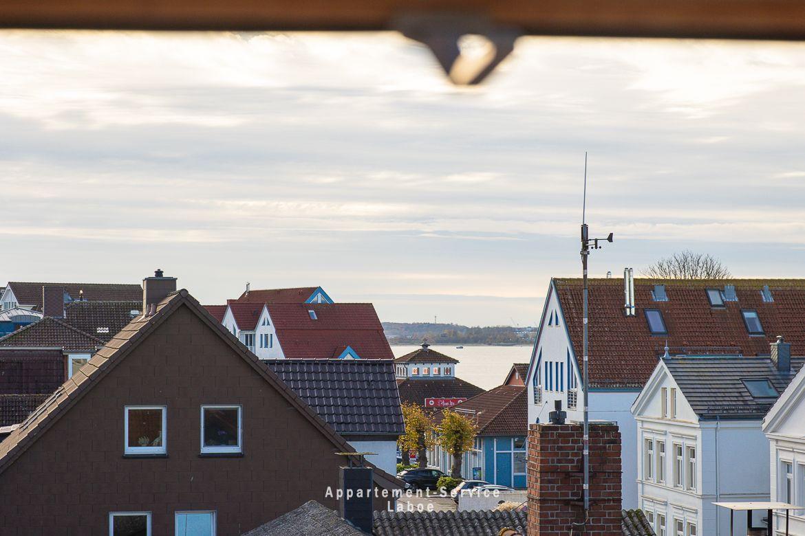 Beide Balkone zeigen zur ruhigen Seitenstraße und bieten dir geschützte Plätze an der frischen Luft. Ob zum Frühstück in der Sonne oder für ein stilles Glas Wein am Abend. Hier findest du dein eigenes kleines Stück Laboe. Einen direkten Meerblick gibt es zwar nicht, dafür bist du in weniger als einer Minute mit den Füßen im Sand.