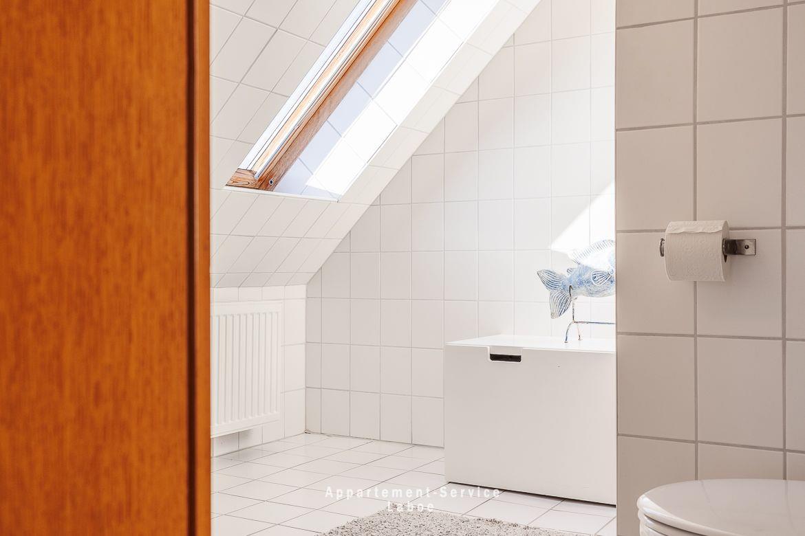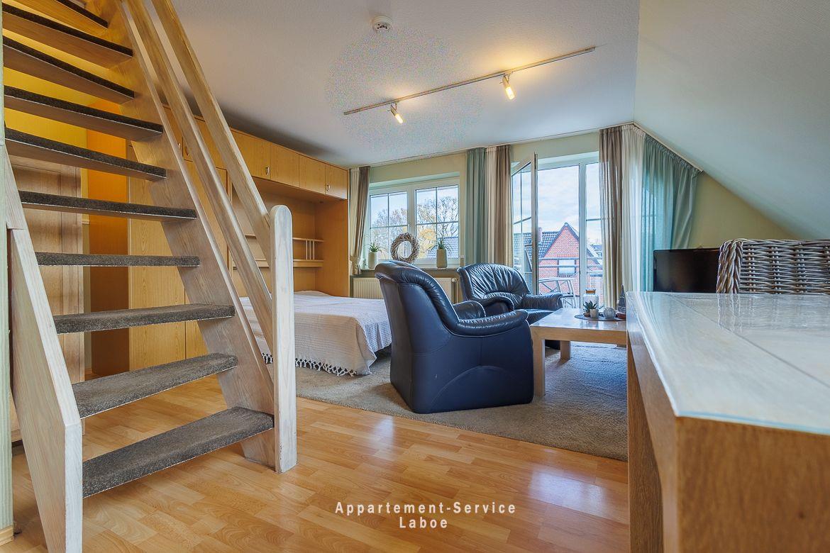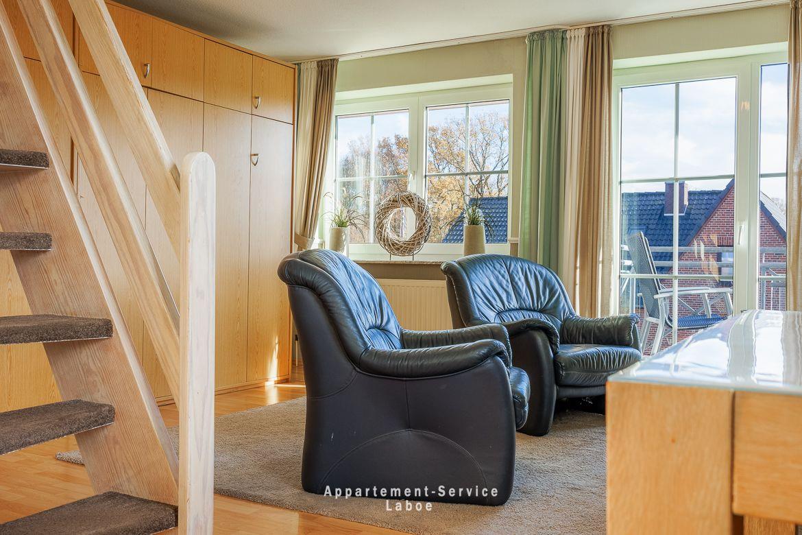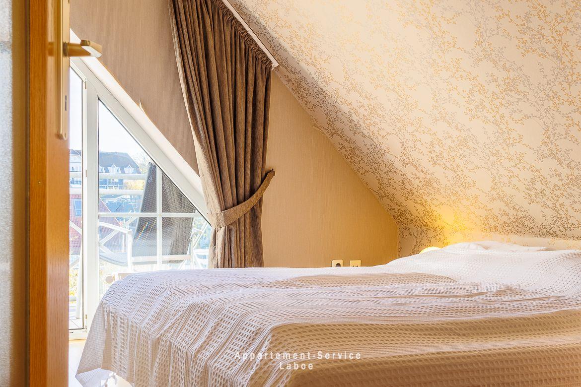 Beide Balkone zeigen zur ruhigen Seitenstraße und bieten dir geschützte Plätze an der frischen Luft. Ob zum Frühstück in der Sonne oder für ein stilles Glas Wein am Abend. Hier findest du dein eigenes kleines Stück Laboe. Einen direkten Meerblick gibt es zwar nicht, dafür bist du in weniger als einer Minute mit den Füßen im Sand.