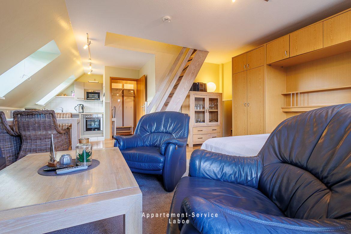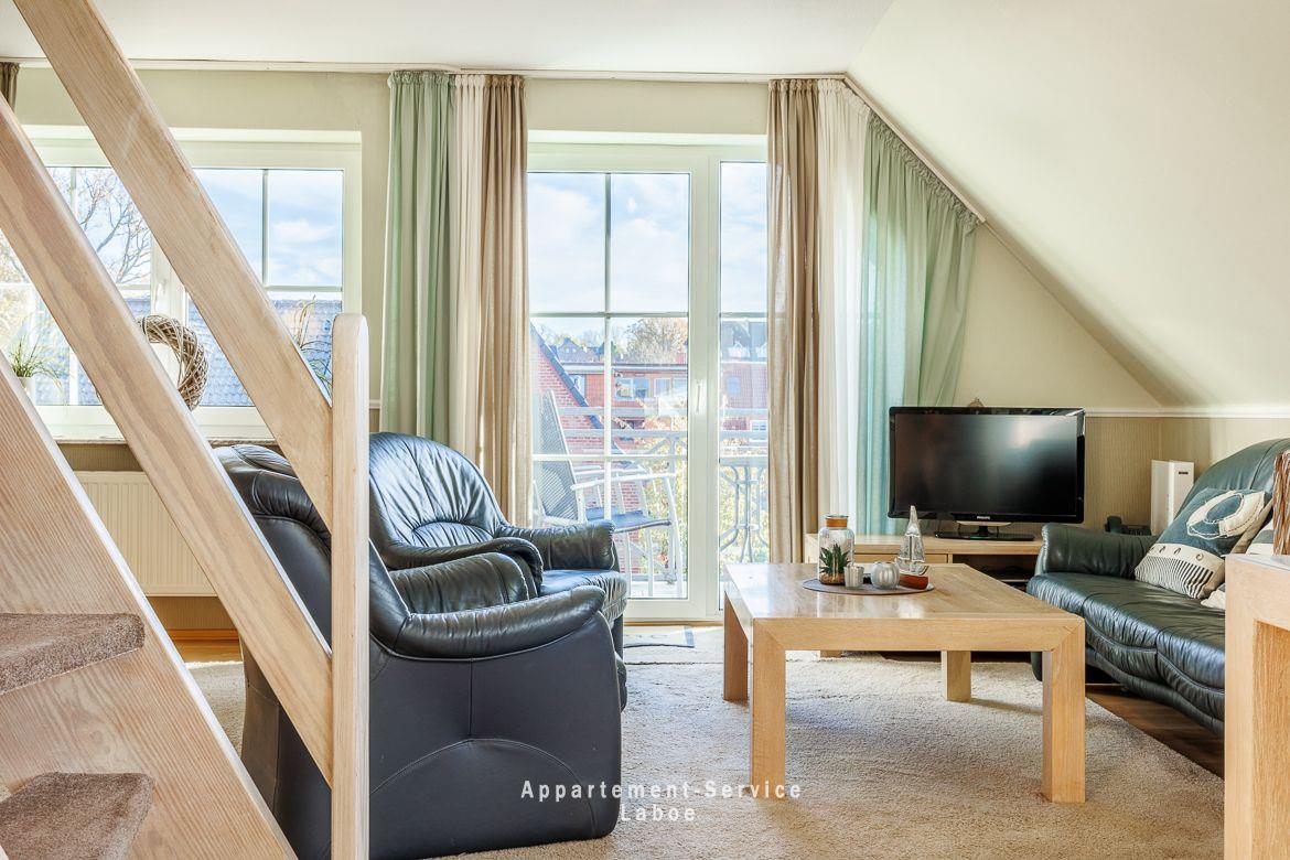 FeWo Bellevue W10: 2-Zimmer-Maisonettewohnung auf ca. 60?m² im 2. OG für bis zu 4 Personen. Wohn-/Schlafbereich mit ausklappbarem Schrankbett, TV, WLAN und Zugang zum Balkon. Offene Küchenzeile mit Essplatz, Ceranfeld, Backofen, Kühlschrank mit Gefrierfach, Kaffeemaschine. Zwei Badezimmer. Oberes Schlafzimmer mit Doppelbett und zweitem Balkon. Beide Balkone zur ruhigen Seitenstraße. Außenstellplatz inklusive. Waschmaschine und Trockner im Haus. Strandkorb am Strand reserviert. Strand, Promenade und Zentrum in direkter Nähe. Keine Haustiere.