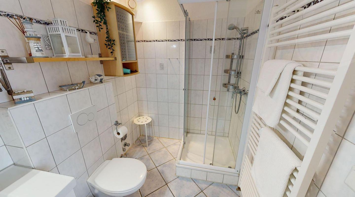 FeWo Seewind W05: 3-Zimmer-Wohnung, 80 m², im 1. Obergeschoss, für bis zu 6 Personen. Zwei Schlafzimmer mit Doppelbetten, zusätzliches Doppelschrankbett im Wohnbereich. Offener Wohn- und Essbereich mit Sofa, Sesseln, Essplatz, drei TVs, HiFi-Anlage und WLAN. Voll ausgestattete Küche mit Cerankochfeld, Backofen, Mikrowelle, Kühlschrank, Spülmaschine und Kaffeemaschine. Badezimmer mit Dusche und WC. Zwei möblierte Balkone: einer mit Ostseeblick, einer zum Garten. Gemeinschaftsgarten mit Fass-Sauna, Hot-Tub und Grillplatz. Pkw-Stellplatz am Haus, Ladesäule für E-Autos vorhanden. Waschraum mit Waschmaschine und Trockner (Münzeinwurf). Haustiere erlaubt. Ca. 20 m zum Strand, fußläufig zu Promenade, Hafen, Einkaufsmöglichkeiten, Gastronomie und Spielplätzen.