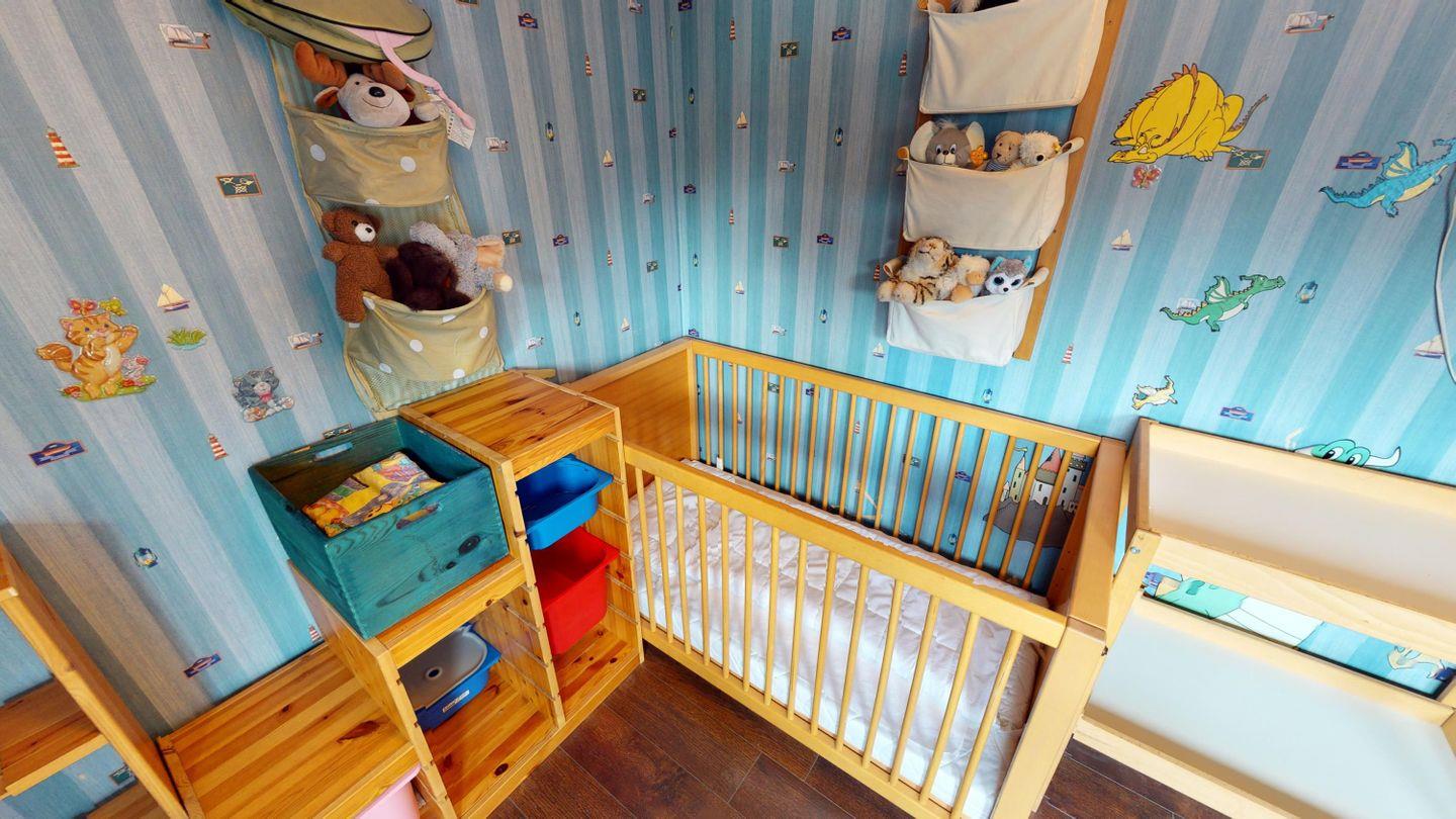 Im Obergeschoss warten vier weitere Schlafzimmer: Zwei davon mit Doppelbetten, eines mit Zugang zu einem kleinen Balkon. Ein Zimmer mit zwei Einzelbetten sowie ein liebevoll eingerichtetes Kinderzimmer mit Gitterbett und Wickelkommode. Zwei Badezimmer sorgen hier für Komfort: eines mit Dusche, das andere mit Badewanne und zusätzlicher Duschmöglichkeit.
