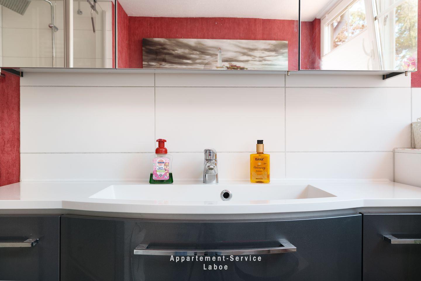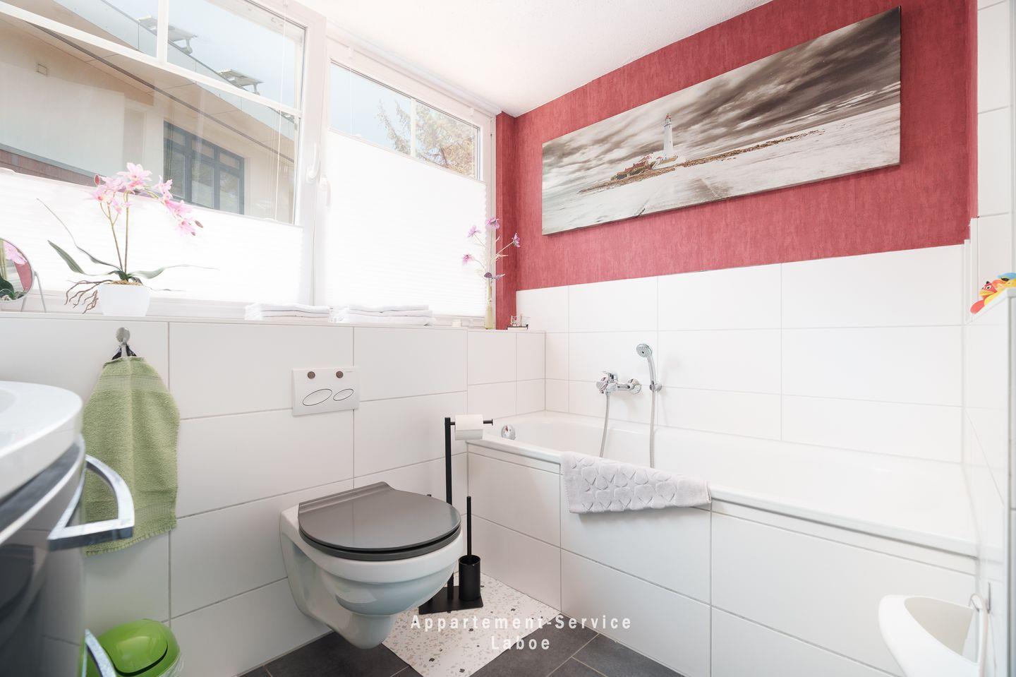 Besonders angenehm für Familien: Das Badezimmer bietet neben einer Dusche auch eine Badewanne – ideal für entspannende Momente oder um die Kleinen nach dem Strand vom Salz und Sand zu befreien.