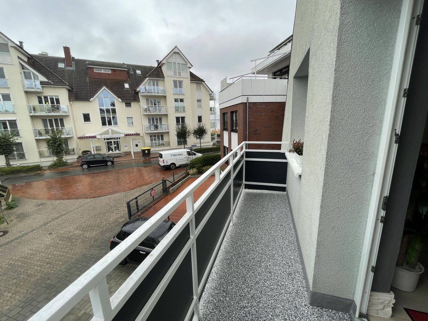 Ein kleiner Balkon ist direkt vom Wohnzimmer aus zugänglich – hier kannst du bei frischer Brise und Möwengeschrei wunderbar zur Ruhe kommen. Für Unterhaltung und Komfort stehen dir Sat-TV, eine Stereoanlage, ein DVD-Player sowie kostenfreies WLAN zur Verfügung. Ein eigener Pkw-Stellplatz direkt an der Unterkunft sorgt zudem für eine unkomplizierte Anreise und macht spontane Ausflüge in die Umgebung problemlos möglich.