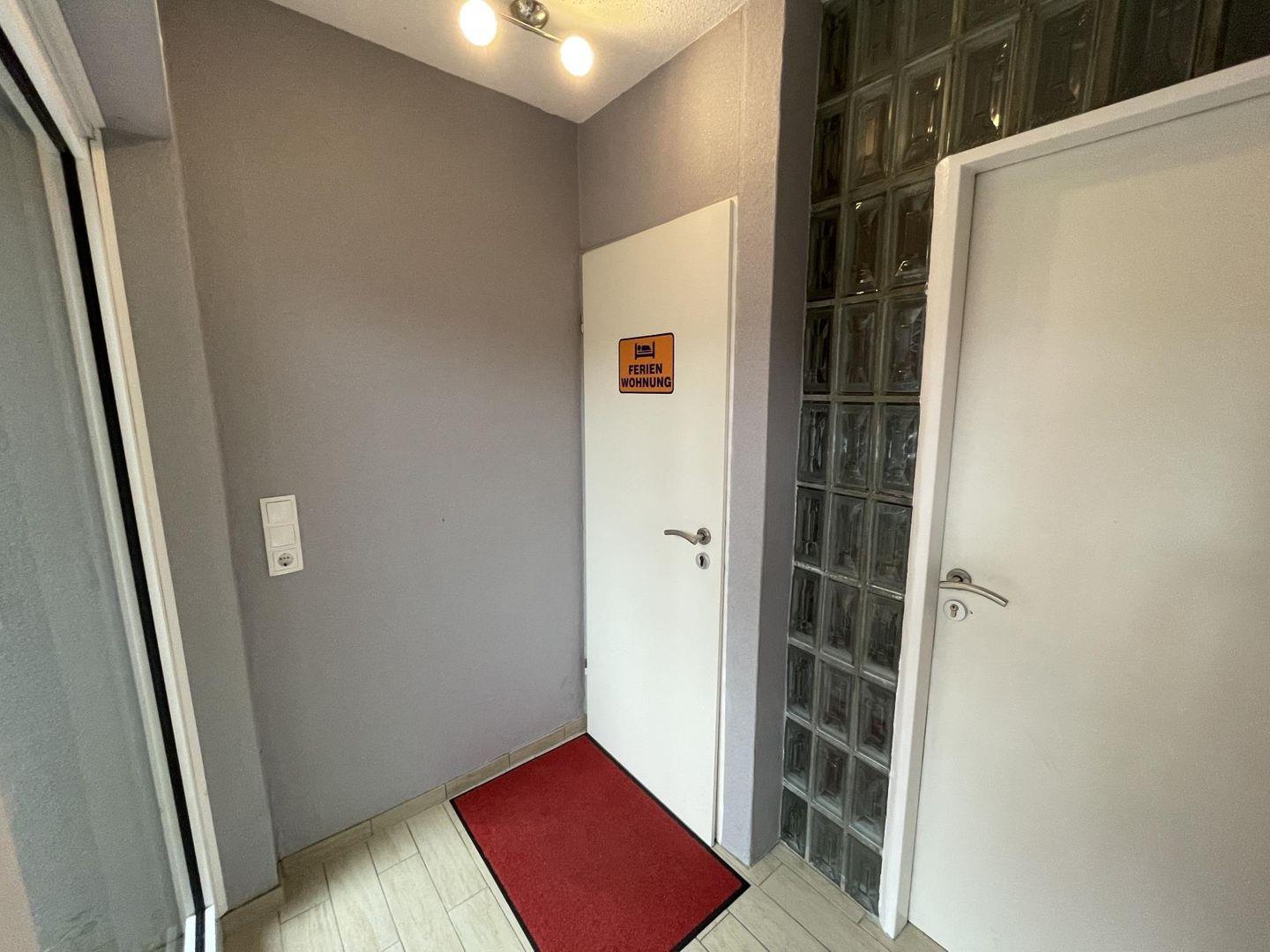 Die Wohnung befindet sich im ersten Obergeschoss und erstreckt sich über etwa 80?Quadratmeter. Sie bietet ausreichend Platz für bis zu fünf Erwachsene und ein Kleinkind und ist damit ideal für Familien oder kleine Reisegruppen. Bereits beim Betreten sorgt ein großzügiger Flur mit Garderobe für ein aufgeräumtes Willkommen.