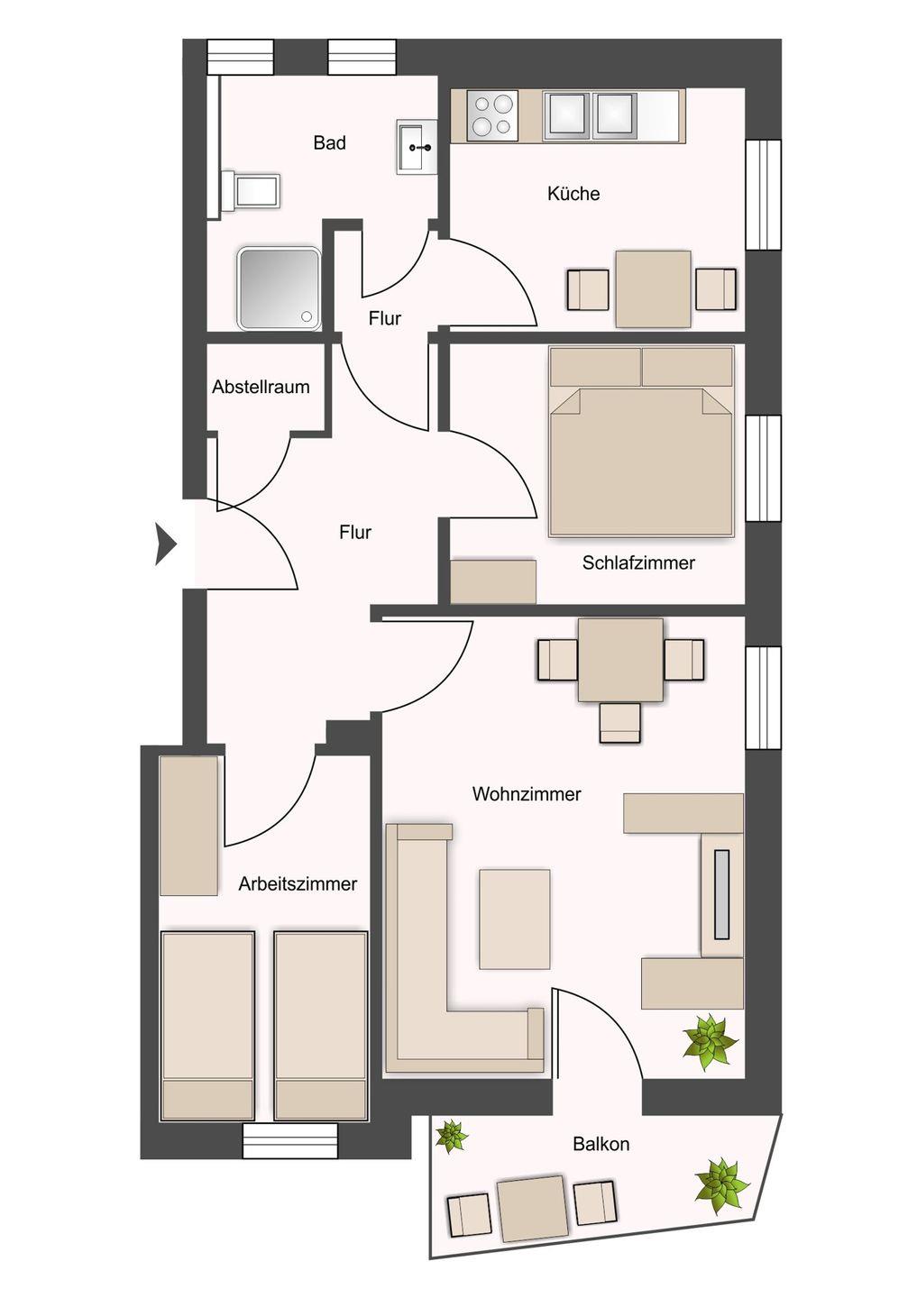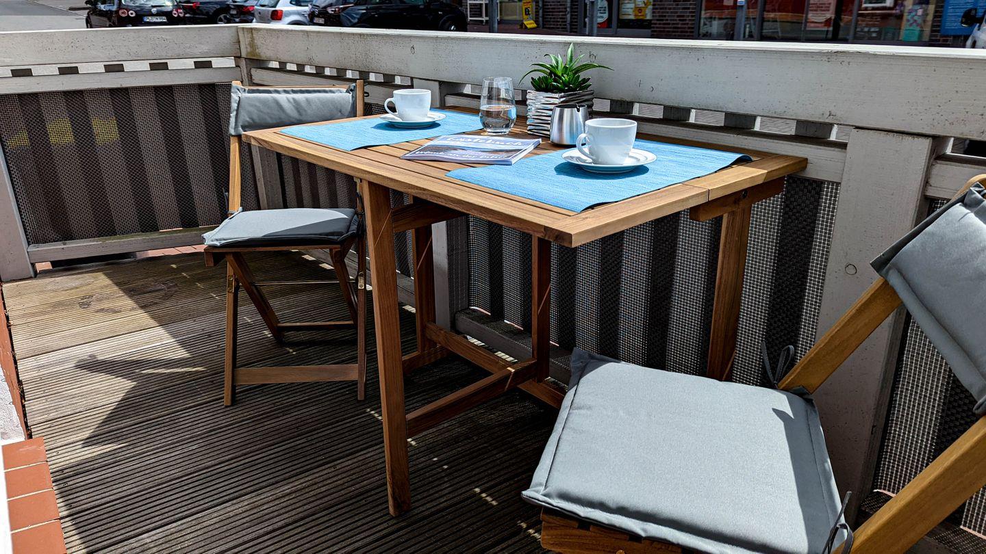 Ein kleiner möblierter Balkon gehört ebenfalls zur Wohnung. Hier kannst du die frische Luft genießen oder einfach mit einem Kaffee in den Tag starten.