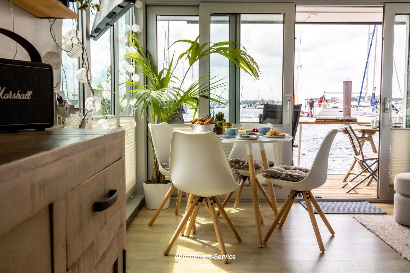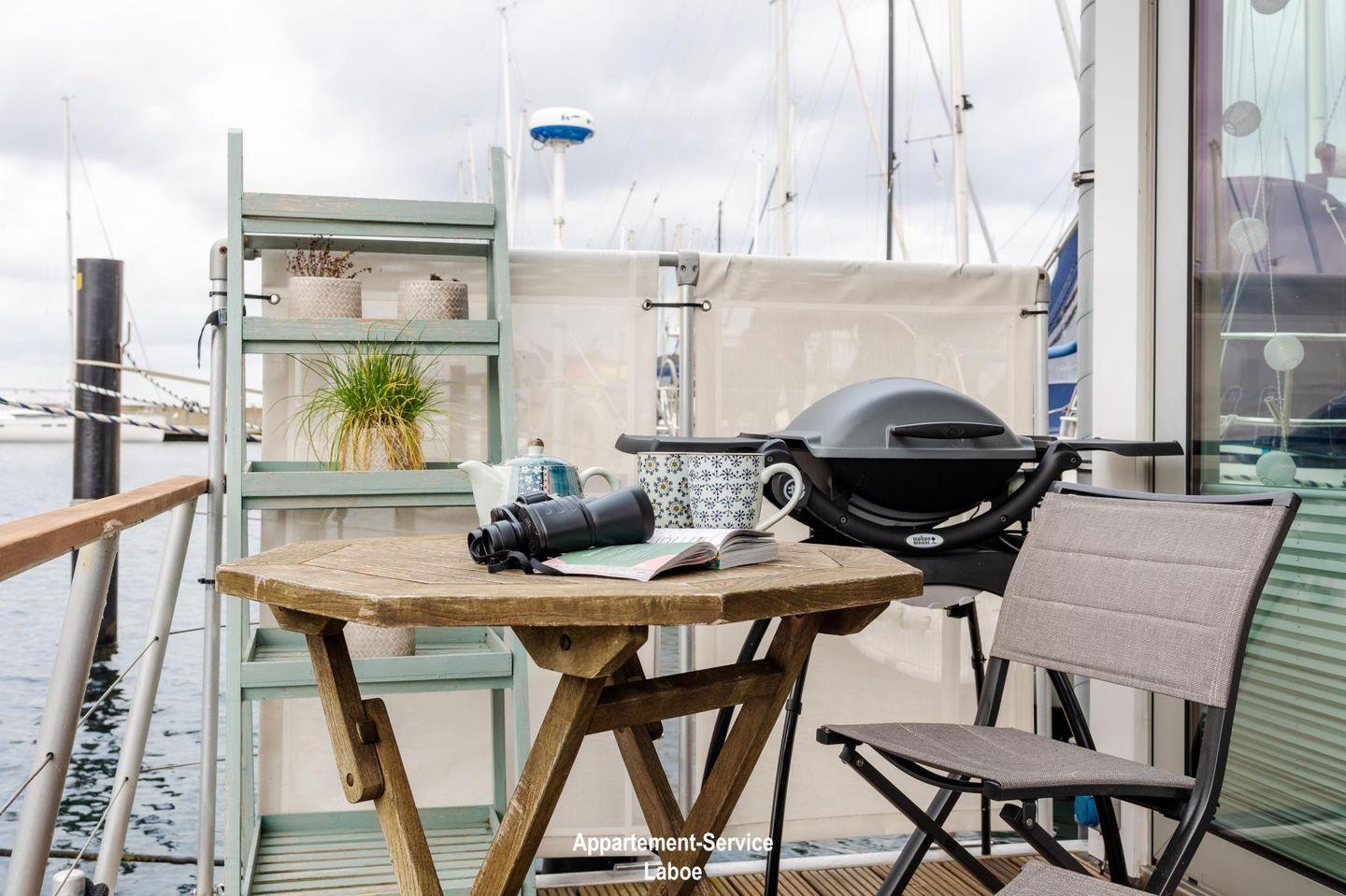 Hausboot CANOGA: Stilvolles Boho-Hausboot direkt an der Kieler Außenförde mit spektakulärem Ausblick und Platz für bis zu 2 Personen. Ca. 40?m² Wohnfläche plus 40?m² große Dachterrasse mit Schlafstrandkorb, Hängesesseln und Yoga-Ecke. Innen: Schlafzimmerkajüte mit Doppelbett, kleine Kajüte mit Schlafsessel, moderne Küche mit Geschirrspüler, Duschbad, gemütlicher Wohnbereich mit Panoramafenstern. Zwei Fahrräder inklusive. Zugang über schmale Gangway. Sanitäranlagen zusätzlich im Yachthafen nutzbar. Nichtraucher, keine Haustiere.