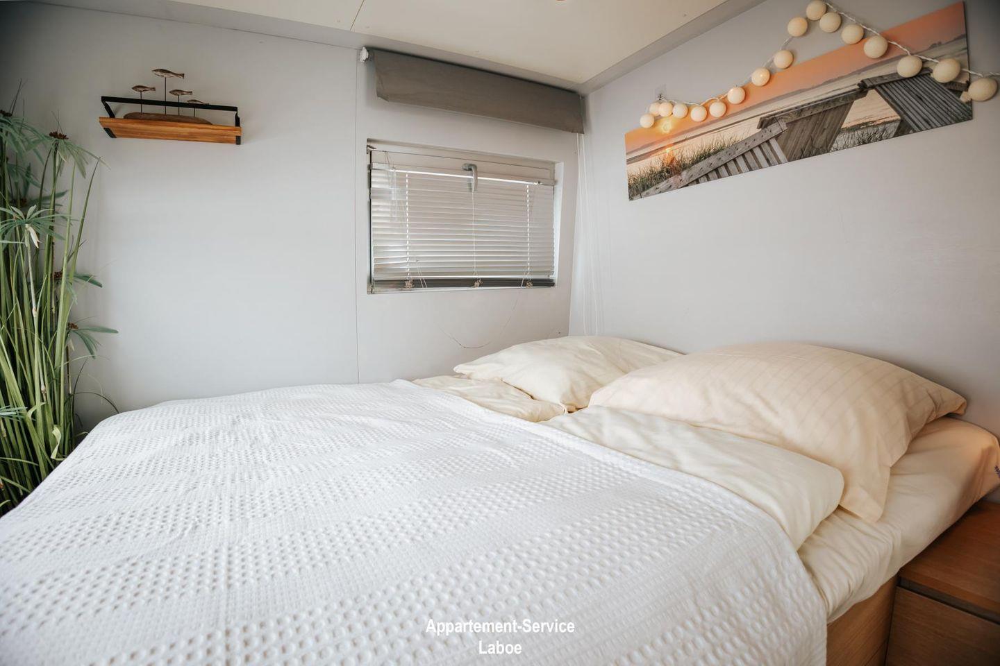 Die Einrichtung kombiniert helles Holz, skandinavisches Design und viele Pflanzen, die für eine behagliche und entspannte Atmosphäre sorgen. Eine schicke Küche mit Geschirrspüler, ein modernes Duschbad und ein gemütliches Schlafzimmer mit Bullaugenfenstern machen die CANOGA zu einem komfortablen Zuhause auf Zeit. Eine Schlafzimmerkajüte mit Doppelbett und eine kleine Kajüte mit Schlafsessel bieten dir den perfekten Rückzugsort, während das maritime Ambiente durch die großzügigen Fenster stets präsent bleibt.