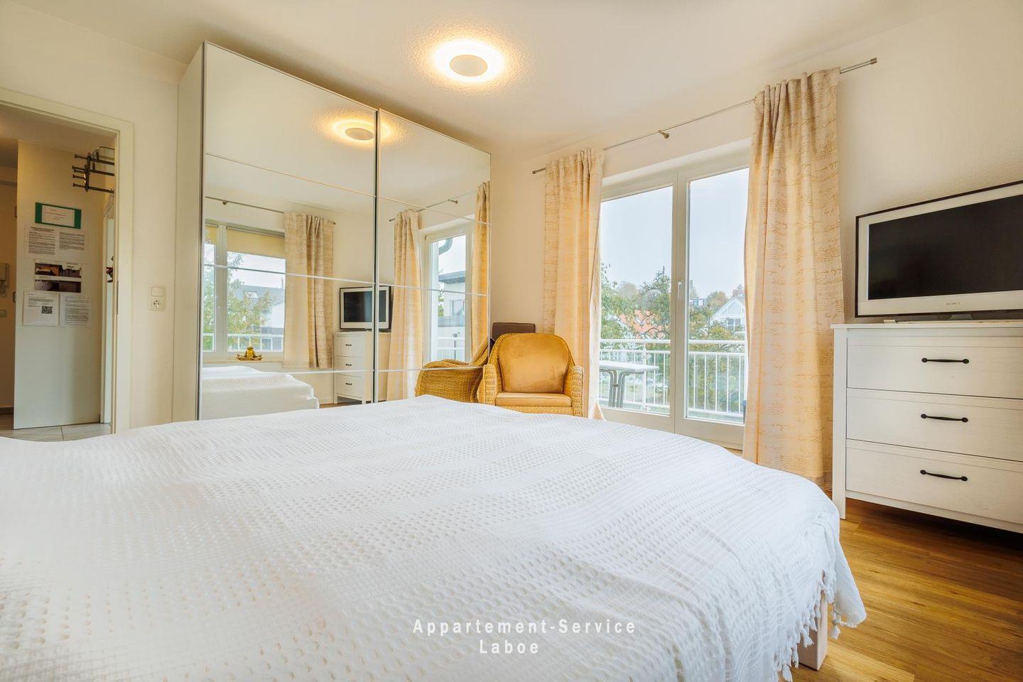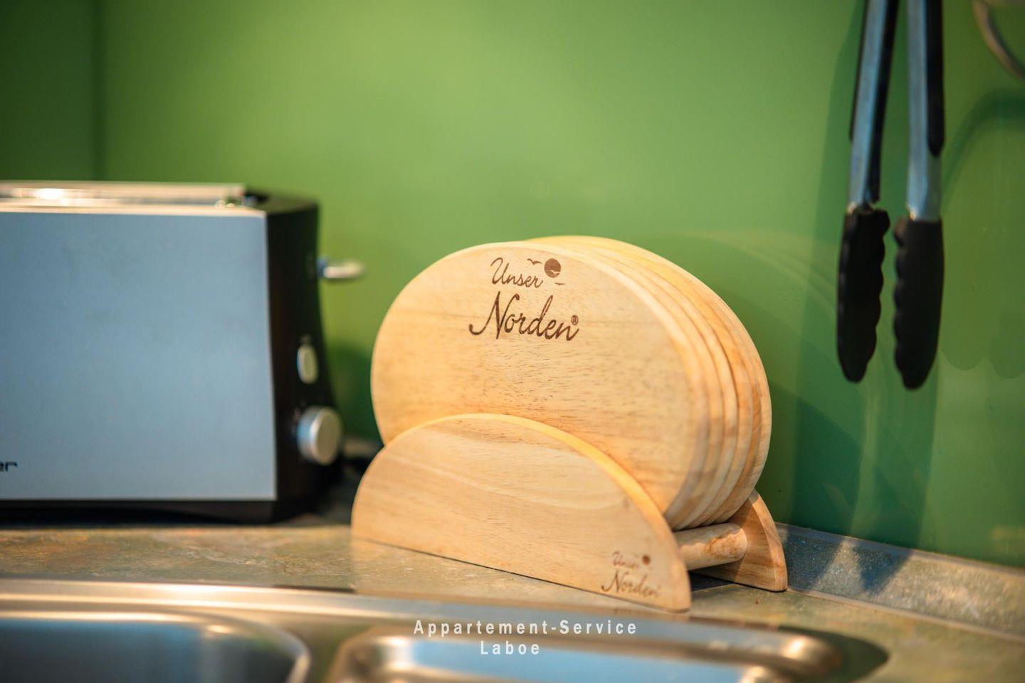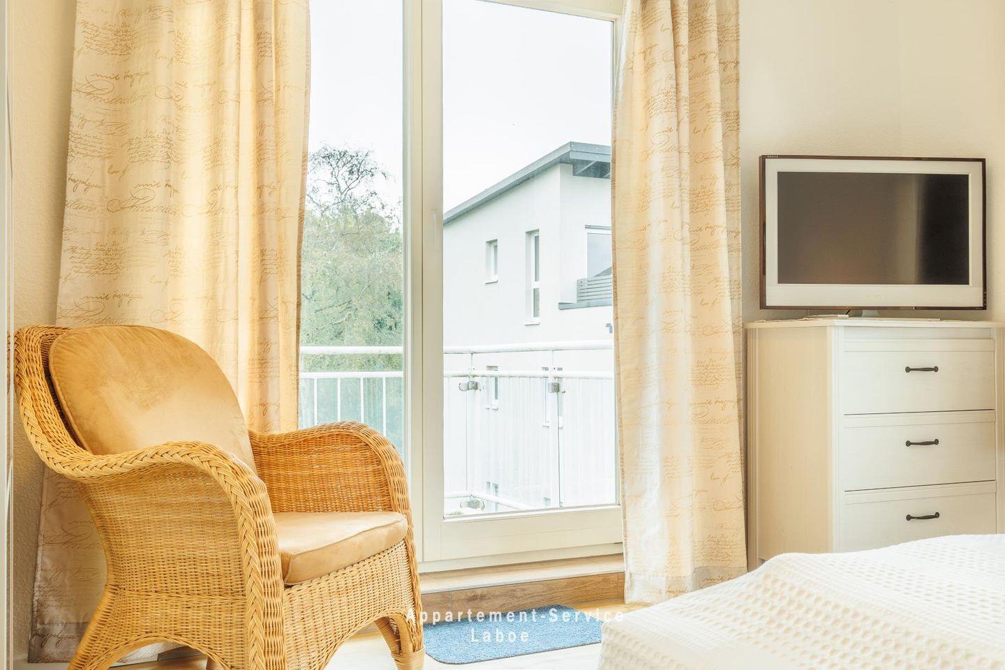 Ein echtes Highlight sind die zwei möblierten Balkone: Einer zeigt zur Fördeseite mit Blick auf Wasser und Promenade, der andere bietet zur Gartenseite Ruhe und Grün – je nach Tageszeit findest du hier Sonne oder Schatten, ganz wie du willst.
