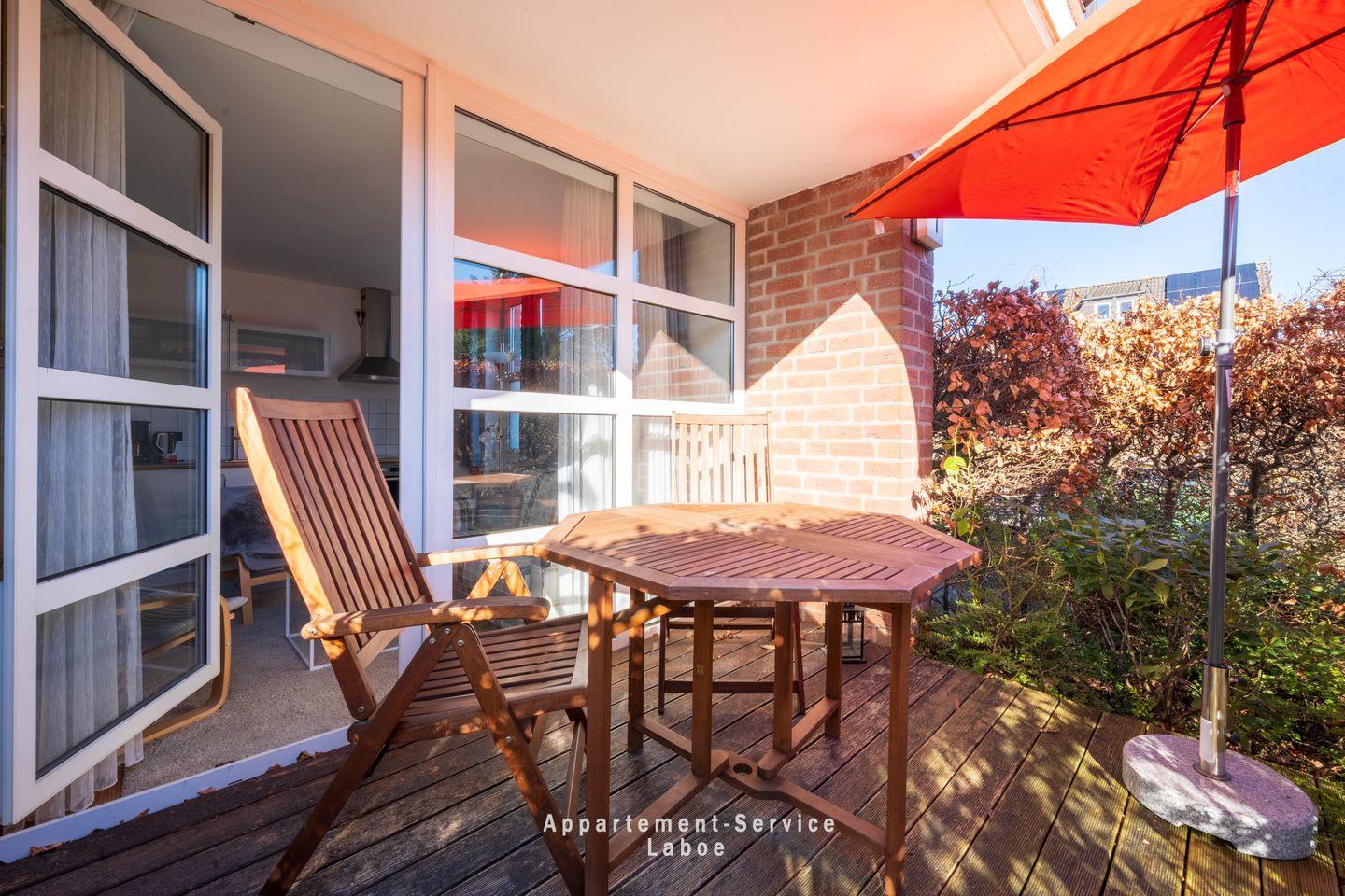 Ein echtes Highlight ist die möblierte Terrasse. Hier kannst du die frische Ostseeluft genießen, in Ruhe einen Kaffee trinken oder den Abend entspannt ausklingen lassen.