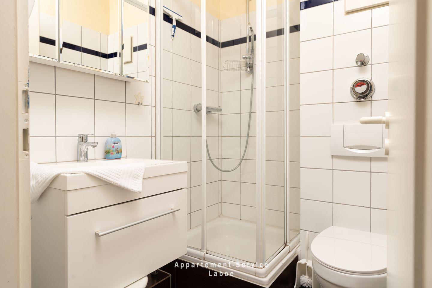 Die Ausstattung ist gepflegt und hochwertig. Möbel renommierter Marken wie Sit, Scan-Brocke, Voss und Nolte, ein Parador-Laminatboden, ein Federkernsofa sowie liebevolle Details sorgen für ein wohnliches Ambiente mit Qualität. Das Badezimmer mit Dusche und Föhn ist modern und zweckmäßig.
