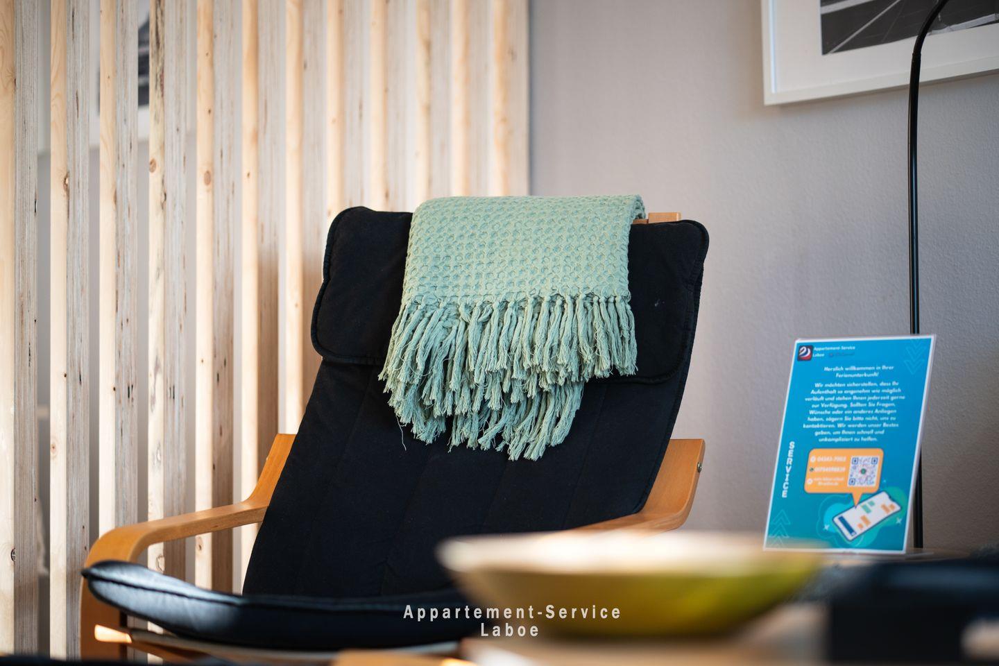 Ein besonderes Highlight ist die eigene Terrasse. Sie ist geschützt und perfekt, um in der frischen Ostseeluft den Tag mit einem Kaffee zu beginnen oder abends entspannt ausklingen zu lassen. Und wenn das Wetter mal nicht mitspielt, kannst du es dir drinnen mit einem Film auf Netflix, einem Blu-Ray-Player oder Musik über die Bluetooth-Box (JBL) gemütlich machen. Natürlich steht dir auch kostenloses WLAN zur Verfügung.