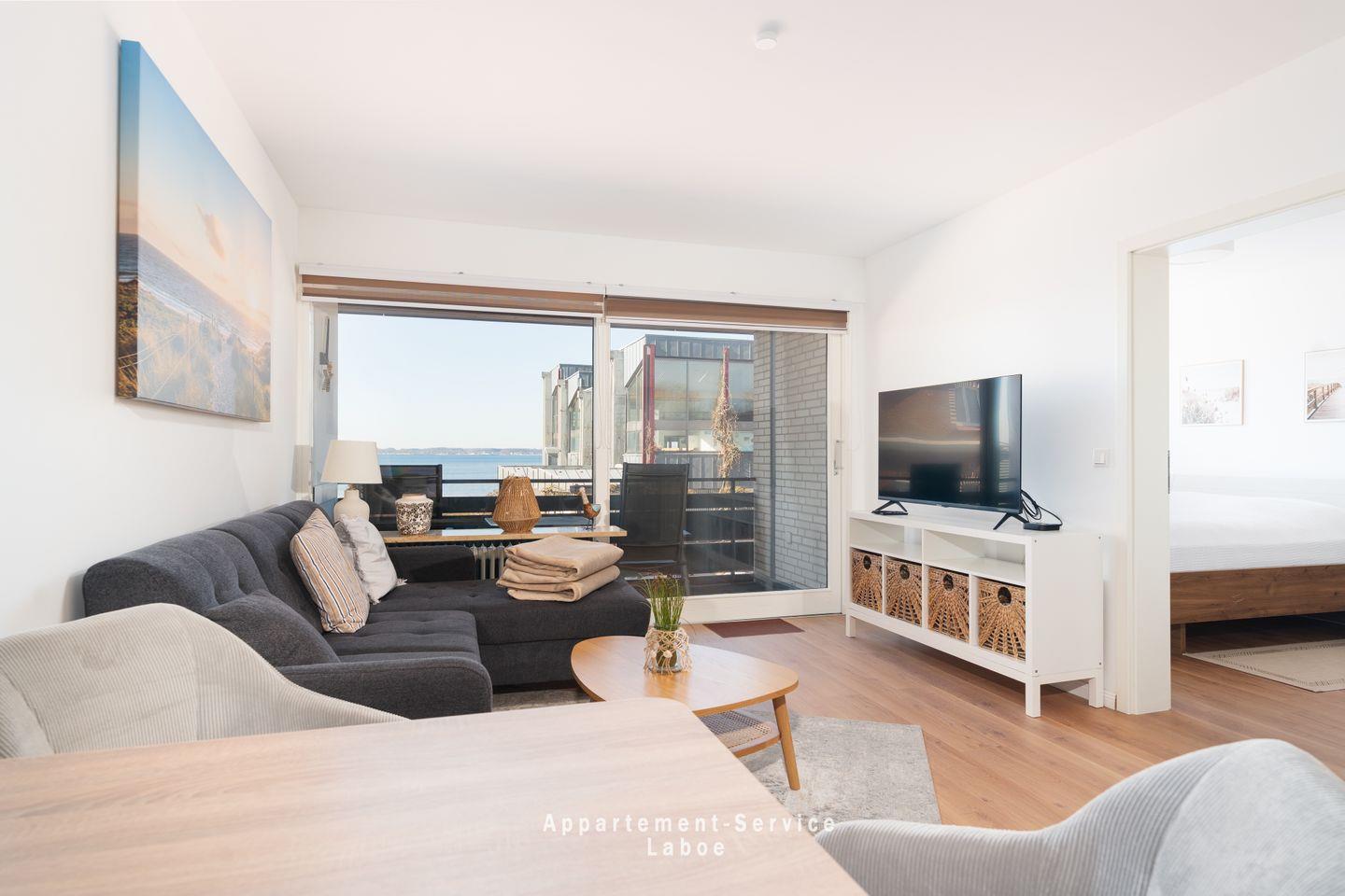 Die 48 m² große Wohnung befindet sich im 1. Obergeschoss und verwöhnt Dich mit einem atemberaubenden Meerblick sowohl aus dem Wohnzimmer als auch aus dem Schlafzimmer und natürlich vom Balkon. Das Wohnzimmer ist mit einer gemütlichen Sitzgruppe und einem TV ausgestattet und lädt zum Entspannen ein. Der möblierte Balkon bietet die perfekte Gelegenheit, die frische Meeresbrise zu genießen.