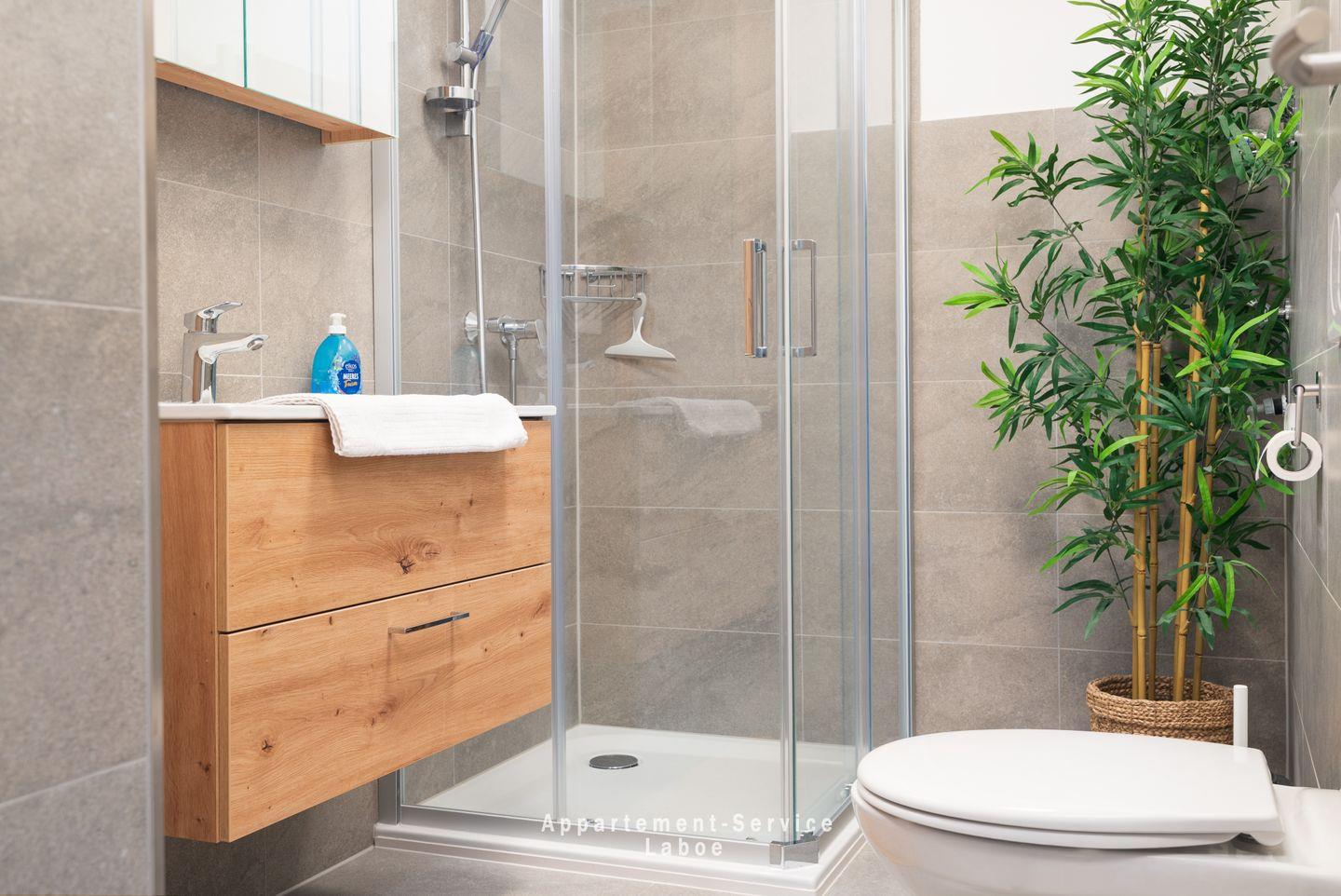 Die offene Küchenzeile ist mit modernen und hochwertigen Elektrogeräten, darunter ein Backofen, eine Kaffeemaschine, ein Geschirrspüler und eine Gefrierkombination, bestens ausgestattet. Das Schlafzimmer verfügt über ein komfortables Doppelbett (180 x 200), das Dir erholsame Nächte garantiert. Das Badezimmer bietet eine Dusche mit tiefem Einstieg und ein WC.