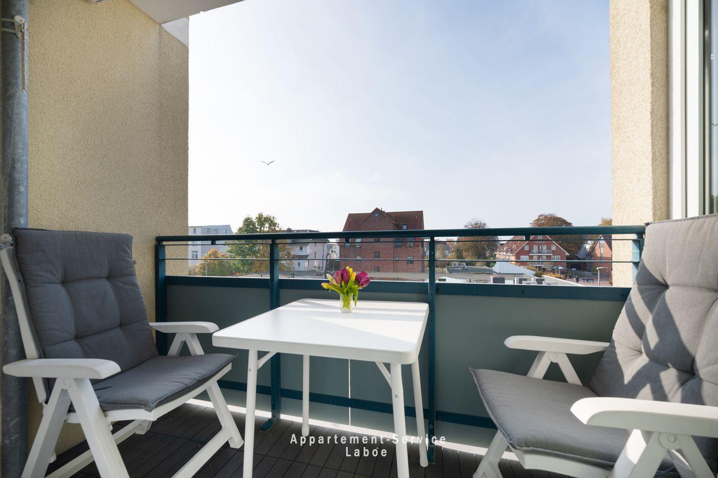 Der möblierte Balkon ist der perfekte Platz, um die frische Ostseeluft zu genießen – ob morgens mit einer Tasse Kaffee oder abends bei einem Glas Wein. Die Wohnung ist praktisch über den Aufzug erreichbar und bietet einen eigenen PKW-Stellplatz. Für deine Fahrräder gibt es zudem sichere Abstellräume, sodass du Laboe ganz unkompliziert erkunden kannst.