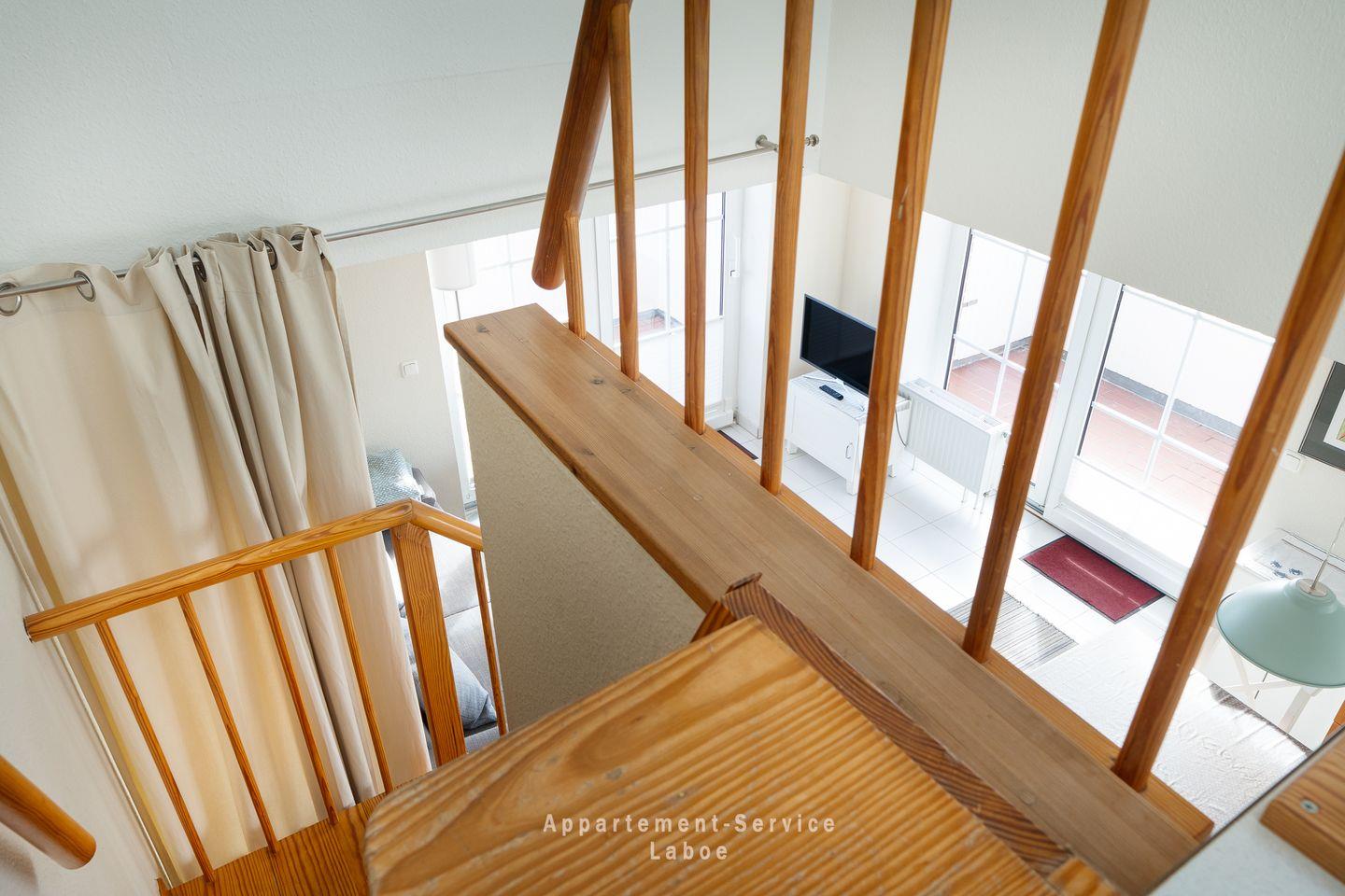 Ein besonderes Highlight dieser Wohnung ist die offene Galerie, die dir einen separaten Schlafbereich mit einem komfortablen Doppelbett bietet. Der kleine Flur mit Garderobe sorgt dafür, dass deine Sachen ordentlich verstaut sind und das moderne Badezimmer mit Dusche und WC bietet dir den Komfort, den du dir für deinen Urlaub wünschst.