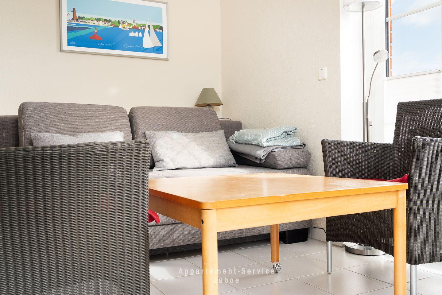 Das kombinierte Wohn- und Schlafzimmer ist lichtdurchflutet und lädt mit seiner gemütlichen Sitzgruppe zum Verweilen ein. Die Doppelbettcouch ist perfekt, um am Abend im Handumdrehen einen weiteren Schlafplatz zu schaffen. Mit TV, Stereoanlage und kostenfreiem WLAN bist du bestens ausgestattet, um zu entspannen, Musik zu hören oder die schönsten Urlaubserlebnisse mit Freunden und Familie zu teilen.