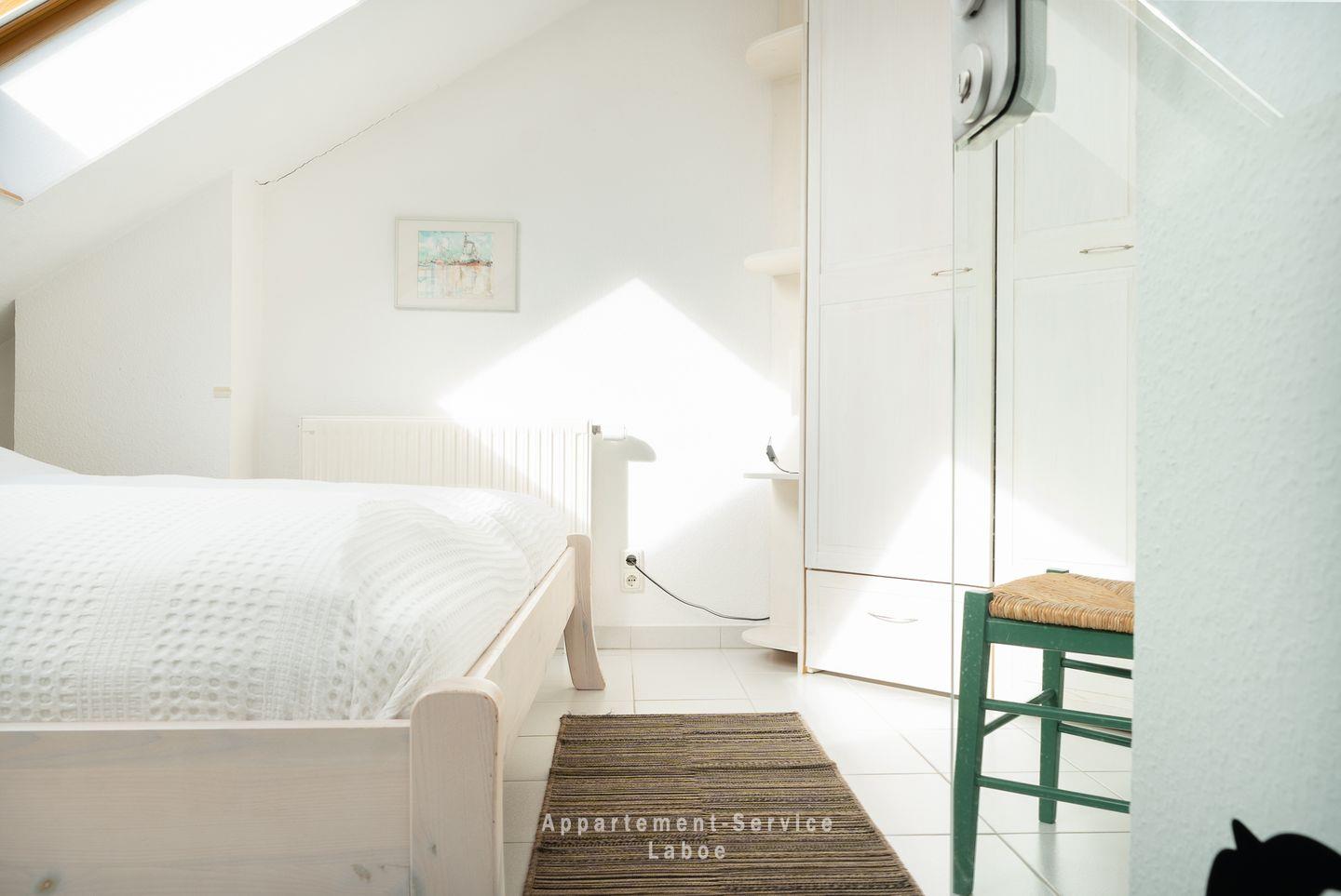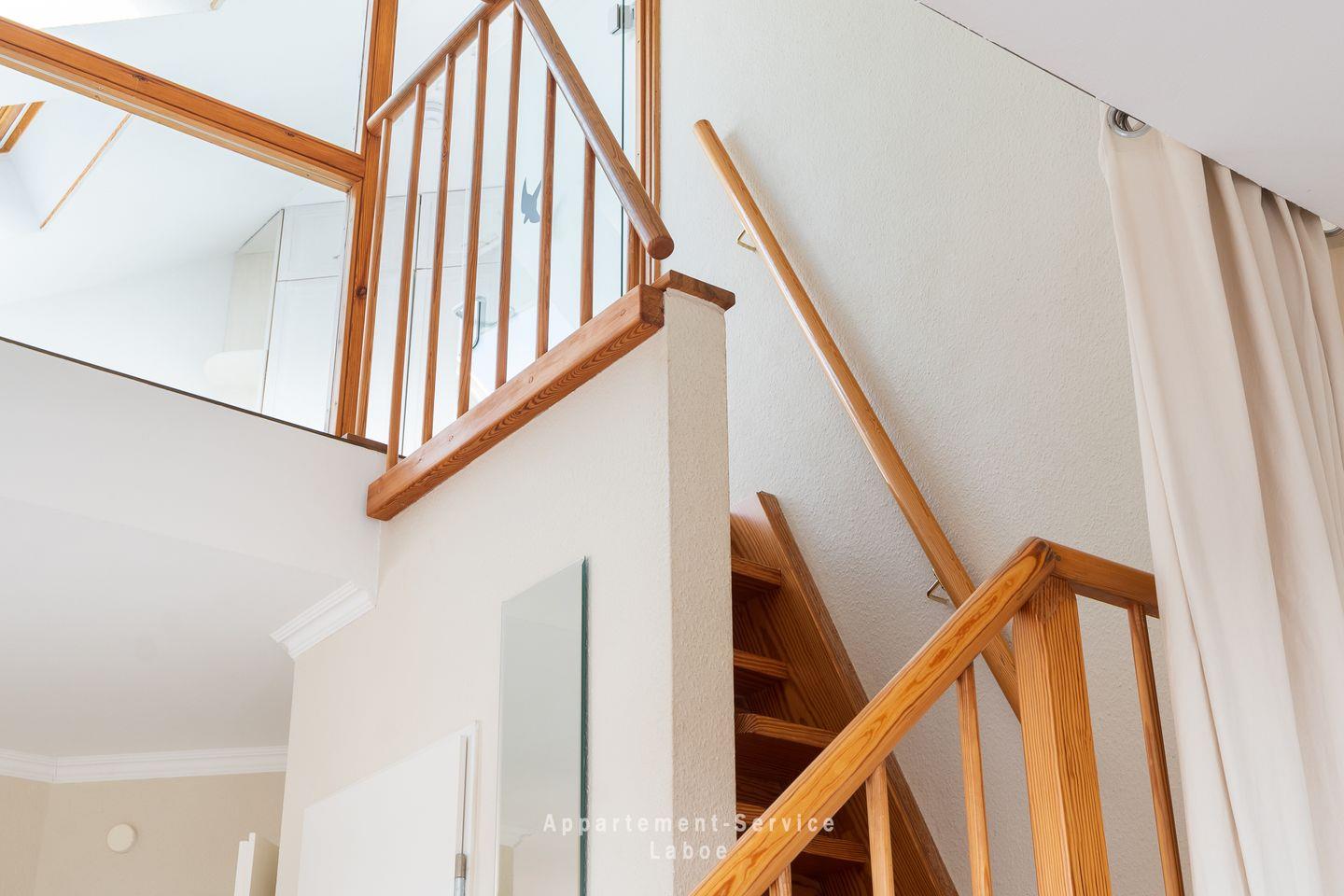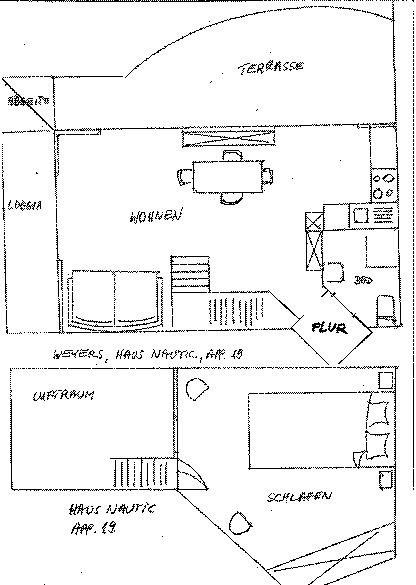 FeWo Nautic W19: 50?m² Maisonette-Zweizimmerwohnung mit Dachterrasse. Zwei Ebenen, Platz für bis zu 4 Personen. Wohn-/Schlafraum mit Doppelbettcouch, TV, Stereoanlage, WLAN. Offene Galerie mit Doppelbett. Küche voll ausgestattet mit angrenzendem Essplatz. Bad mit Dusche/WC. Möblierte Dachterrasse. Tiefgaragenstellplatz im Duplexsystem (max. L 500 cm × B 200 cm × H 150 cm). Nichtraucher, keine Haustiere.