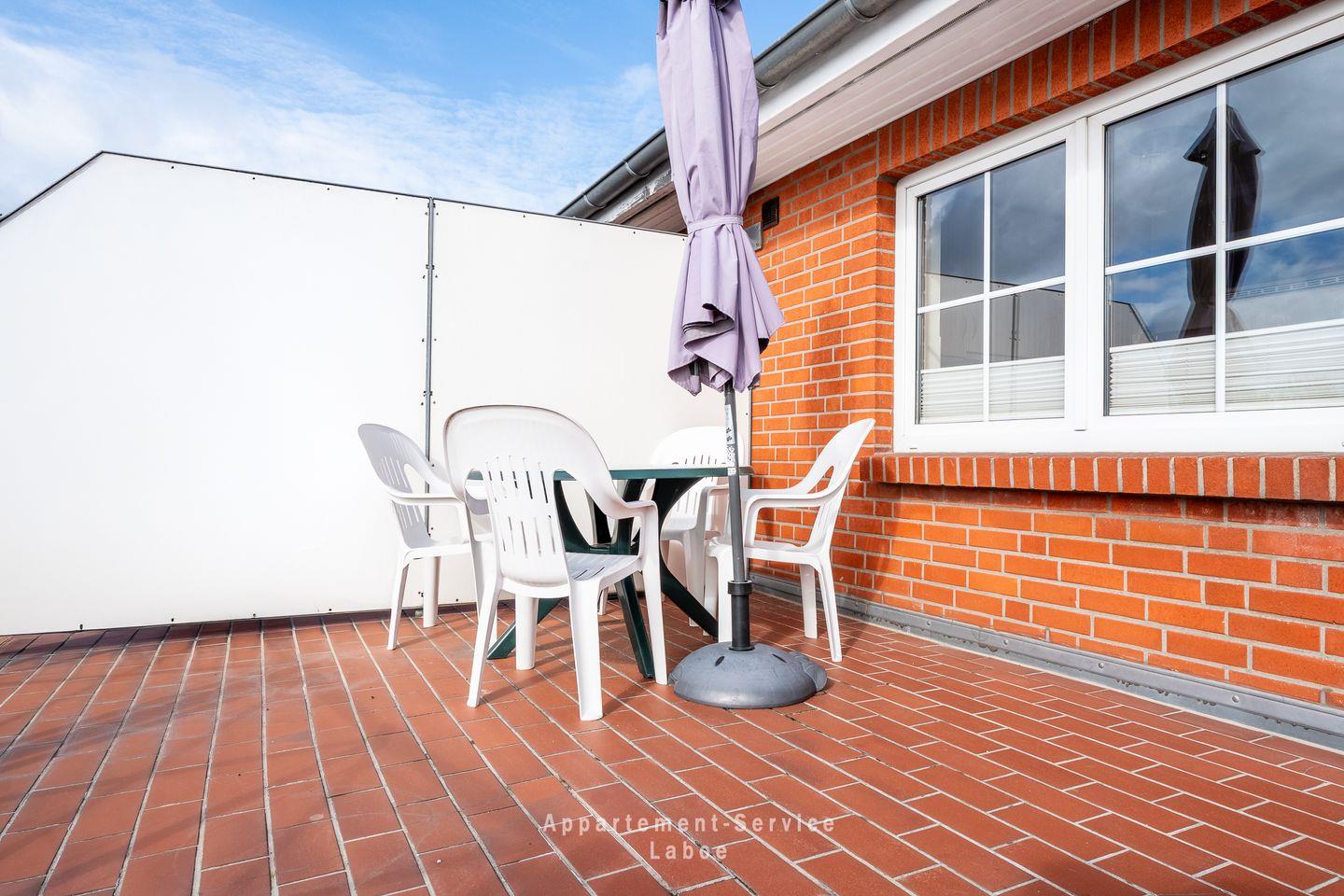 Die großzügige, möblierte Dachterrasse ist der perfekte Ort, um die frische Ostseeluft zu genießen. Hier kannst du den Tag mit einem Kaffee in der Morgensonne beginnen oder abends bei einem Glas Wein den Sonnenuntergang erleben.
