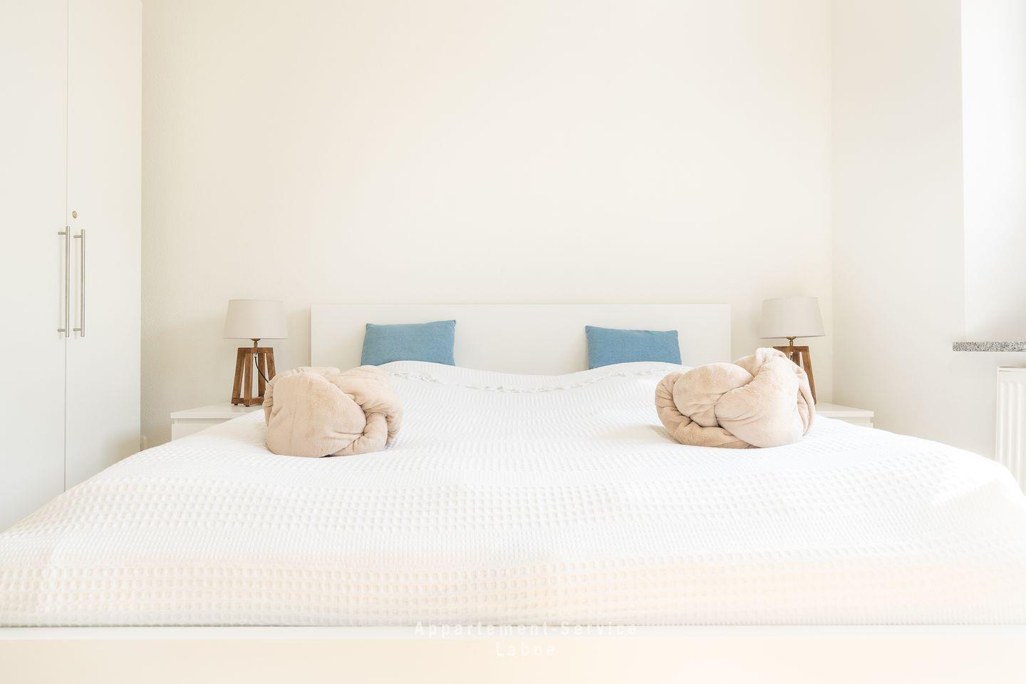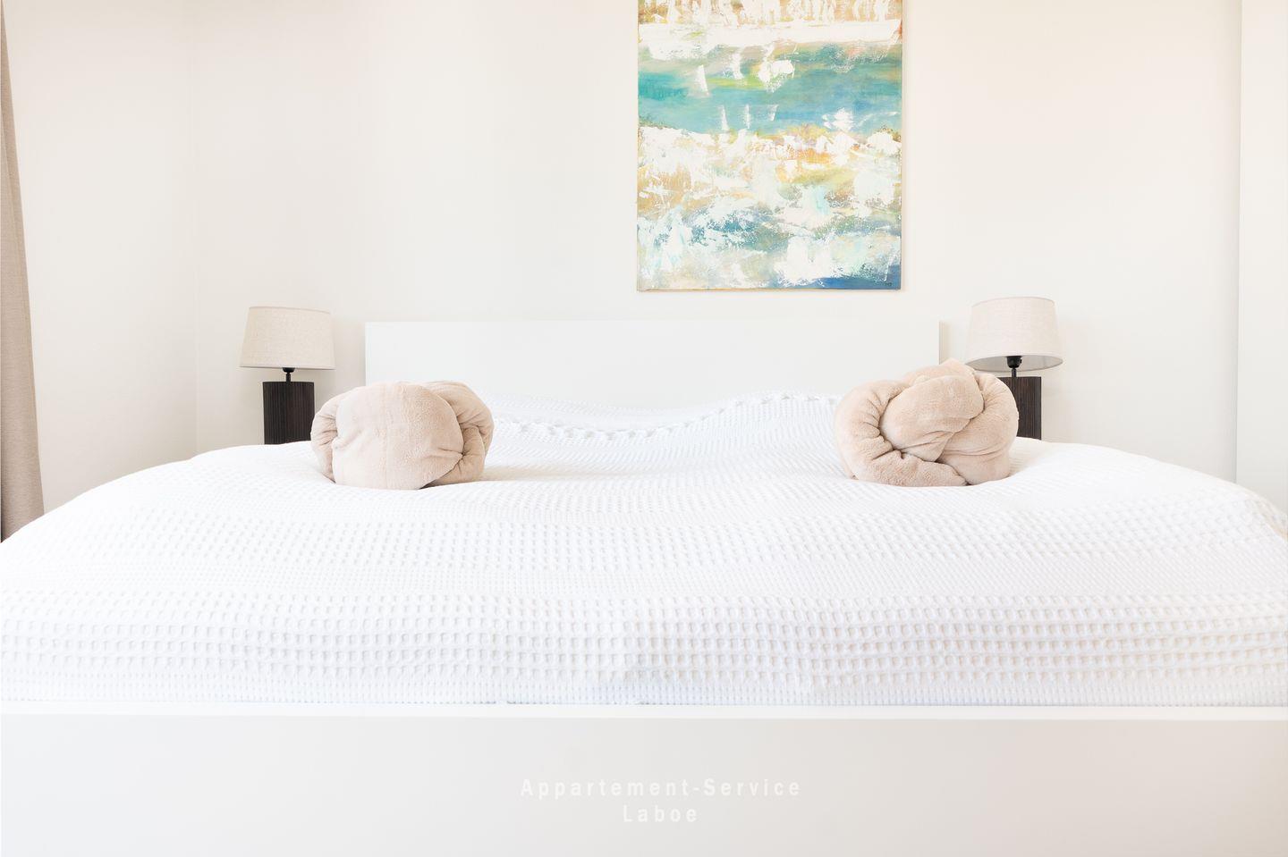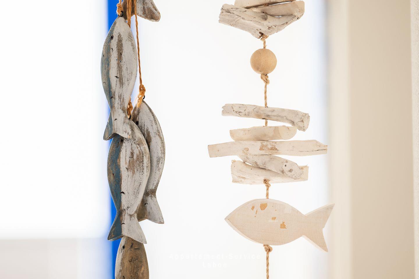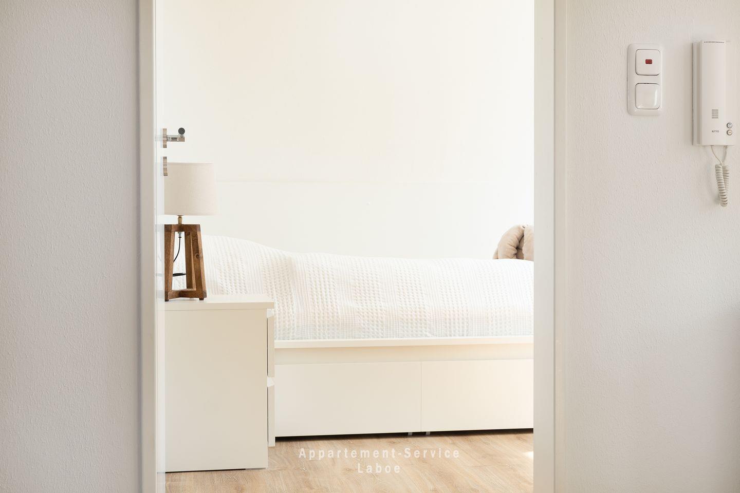 Die Wohnung verfügt über drei Schlafzimmer: zwei mit komfortablen Doppelbetten und eines mit einem Einzelbett. Alle Räume sind mit Kleiderschränken und Kommoden ausgestattet, sodass Sie sich ganz wie zu Hause einrichten können. Besonders hervorzuheben ist das große Schlafzimmer mit einem charmanten Erker, der zum Verweilen einlädt – ideal für eine kurze Auszeit oder konzentriertes Arbeiten mit Blick auf die Förde.