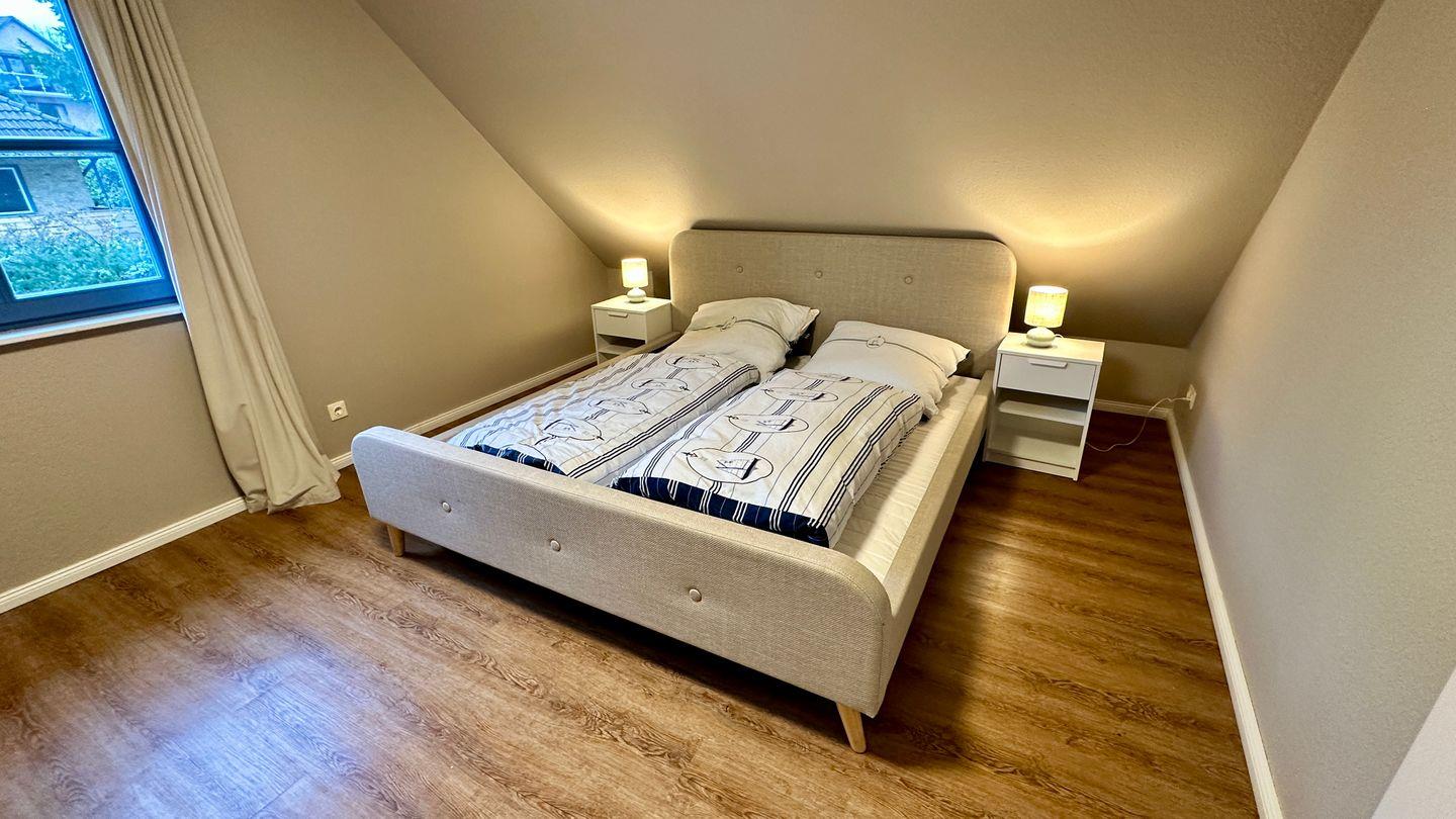 FeWo Ostseetraum-Laboe: 3-Zimmer-Wohnung, ca. 70 m², im 1. Stock, für bis zu 4 Personen. Zwei Schlafzimmer mit Doppelbetten. Wohnbereich mit Sitzgruppe, TV, WLAN. Voll ausgestattete Küche mit Cerankochfeld, Backofen, Geschirrspüler, Kühlschrank, Gefrierschrank und Essplatz. Badezimmer mit Dusche, Badewanne und WC. Balkon mit Meerblick. Eigene Waschmaschine. Pkw-Stellplatz vorhanden, maximal 2 Hunde - keine anderen Haustiere.