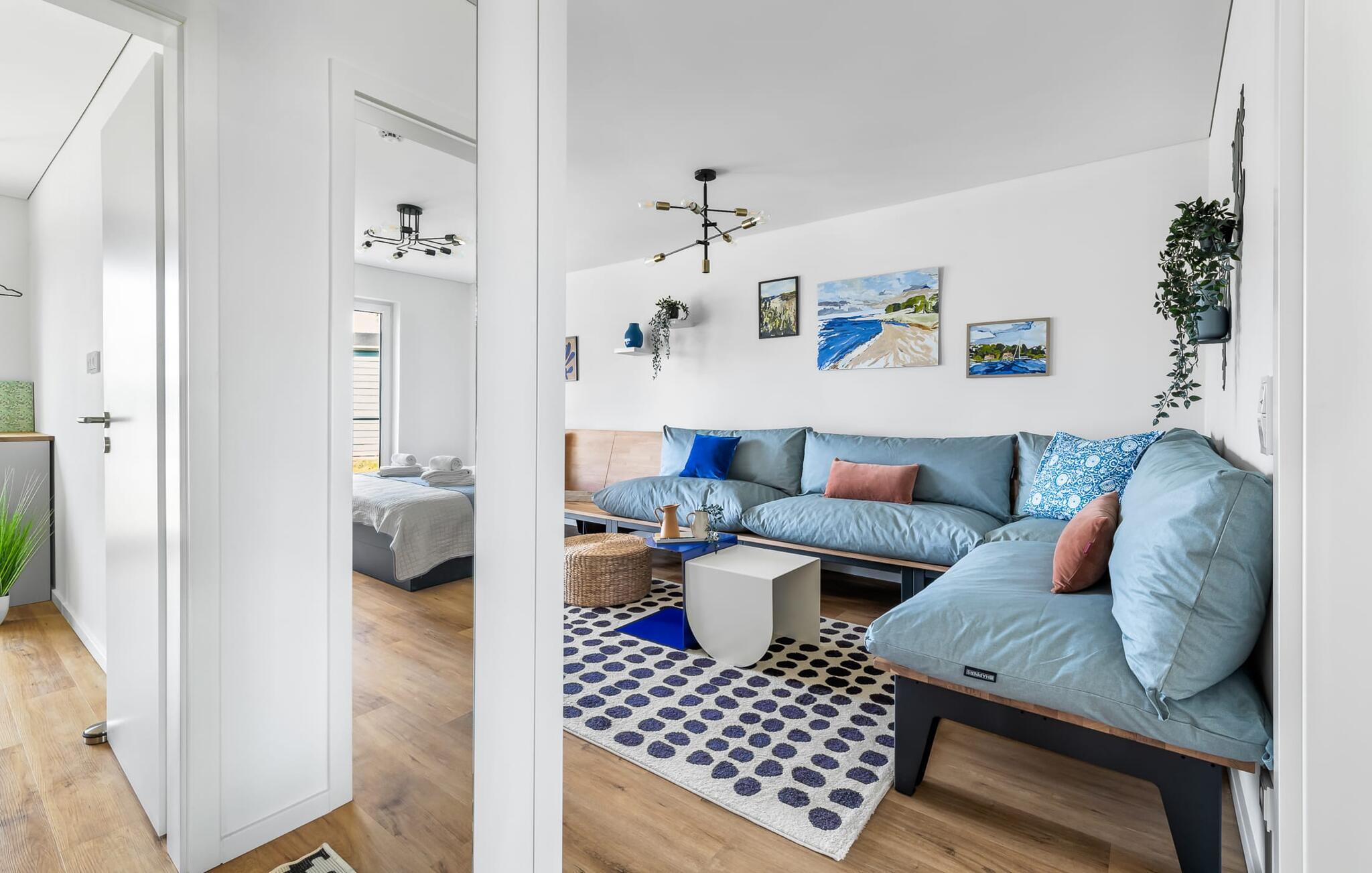 Unsere Designerwohnung zeichnet sich durch eine kunstvolle und farblich abgestimmte Innenausstattung sowie Liebe zum Detail aus.