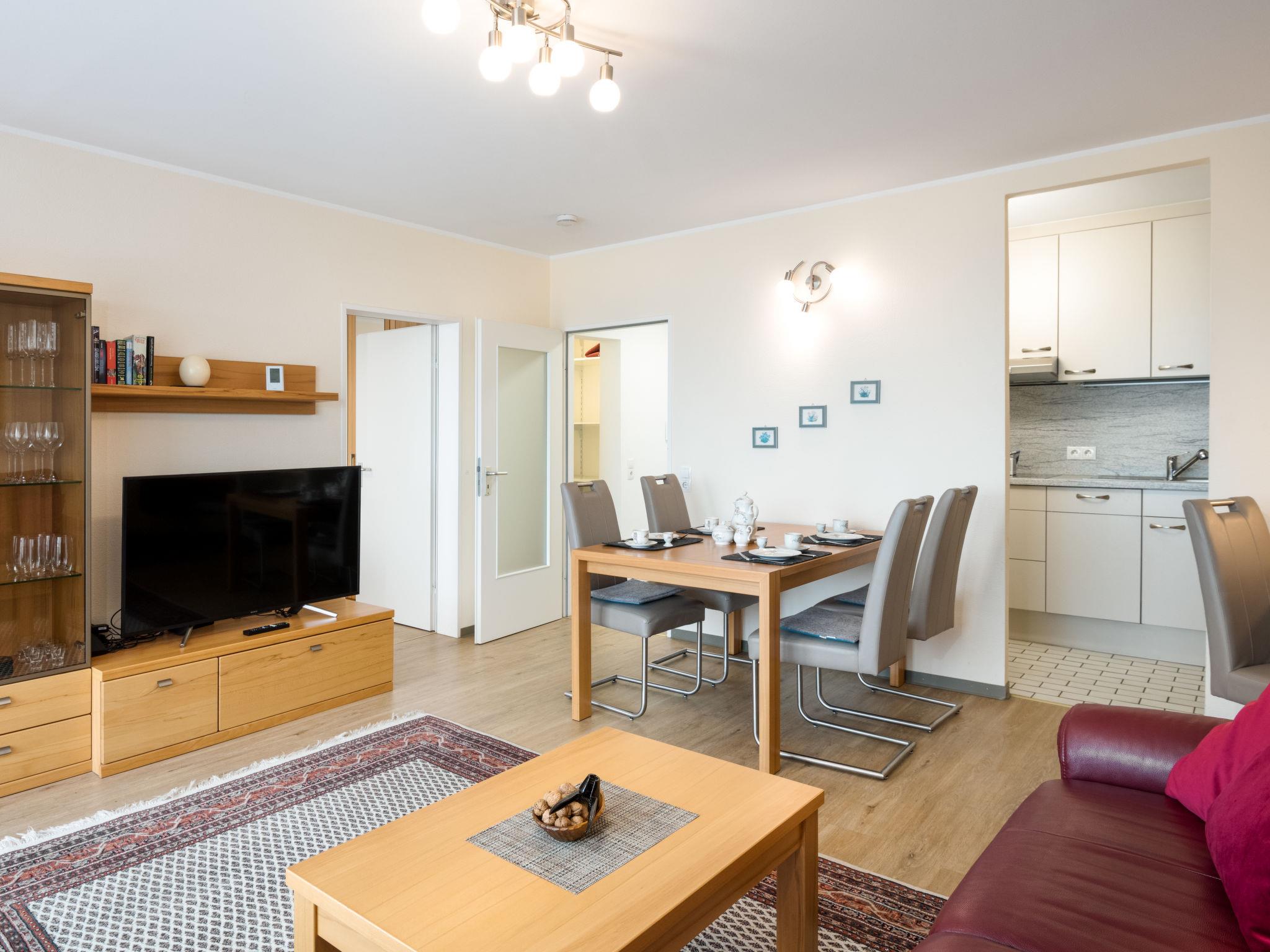 "Löwenzahn (A808)", 2-room apartment 56 m2 on 8th floor, west facing position. Very beautiful and modern furnishings: living/dining room with 1 double sofabed (160 cm, length 200 cm), satellite TV (flat screen). Exit to the balcony. 1 room with 1 double bed (2 x 100 cm, length 200 cm). Kitchenette (oven, dishwasher, 4 induction hot plates, toaster, kettle, electric coffee machine). Shower/WC. Balcony furniture. Very beautiful view of the countryside. Facilities: Internet (WiFi, free). Please note: non-smokers only. Smoke alarm. Bookings accepted for holiday purposes only.