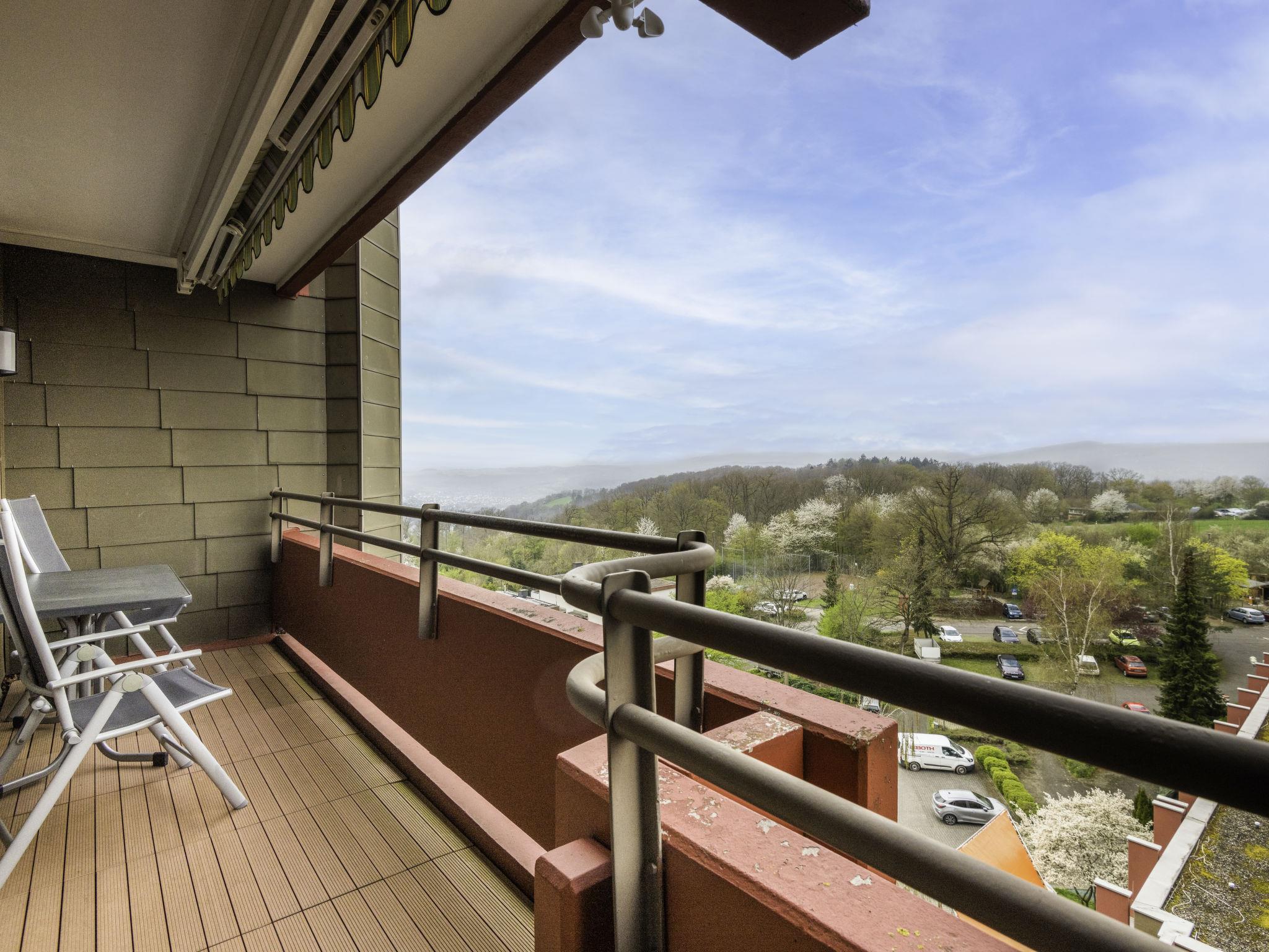 Lahnstein 12 km from Koblenz: Apartment block "Ferienpark Rhein-Lahn". In the district of Lahnstein auf der Höhe 4 km from the centre of Lahnstein, 12 km from the centre of Koblenz, 4 km from the river. For shared use: indoor pool (11 x 6 m, depth 120 cm) with internal staircase. Shower/WC in the pool area. In the complex: reception, WiFi, table tennis, lift, central heating system, washing machine, tumble dryer (for shared use, extra). Parking at the house. E-charging station. Grocery 200 m, supermarket 4.5 km, restaurant 800 m, bakery 4.5 km, bicycle rental 4.5 km, 45 minute walk to the centre, bus stop "Kurklinik" 200 m, railway station "Koblenz (HBF)" 12 km, park "Kurpark" 200 m, outdoor swimming pool 1.5 km, indoor swimming pool 5 km, thermal baths "Emser Therme" 10 km. Golf course (18 hole) 16 km, tennis 500 m, minigolf 6 km, walking paths from the house 100 m, cycle lane 4.5 km, children's playground 100 m. Nearby attractions: Burg Lahneck 3 km, Marksburg 7 km, Deutsches Eck Koblenz / Seilbahn 10 km, Schloss Stolzenfels 13 km. Hiking paths: Lahn-Höhenweg 100 m, Rheinsteig (11) 100 m, Jakobswege Rhein-Lahn. Please note: car recommended. Lahn River 4 km. Boat trips (KD) on the Rhine 4.5 km. Moselle River 10 km. A small kiosk with a small animal enclosure is 300 m away. The Rhein-Lahn holiday park is located 200 m above the town of Lahnstein, in the heart of the 530 km² Nassau Nature Park. It consists of two interconnected apartment buildings and its own Interhome service office. Smoking is permitted on the balconies of the apartments. An 11 kW electric charging station is located in the parking lot. Usage and billing are handled through the Interhome service office.
